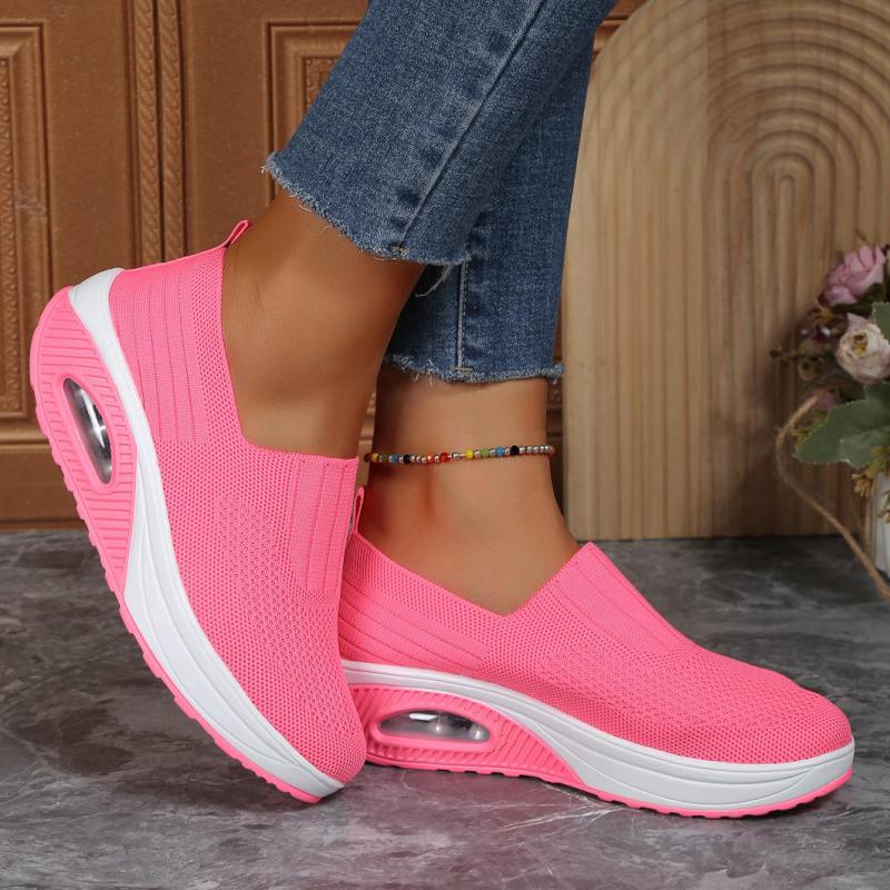 Модная весенняя белая повседневная обувь, спортивная обувь на платформе с воздушной подушкой, женские дышащие кроссовки на толстой подошве, вязаные слипоны для ходьбы