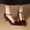 Мода 2025 Весна Женские Туфли Женская Обувь Острый Носок Тонкий Каблук Высокие Каблуки Мэри Джейн Женская Обувь Натуральная Кожа Красные Свадебные Туфли