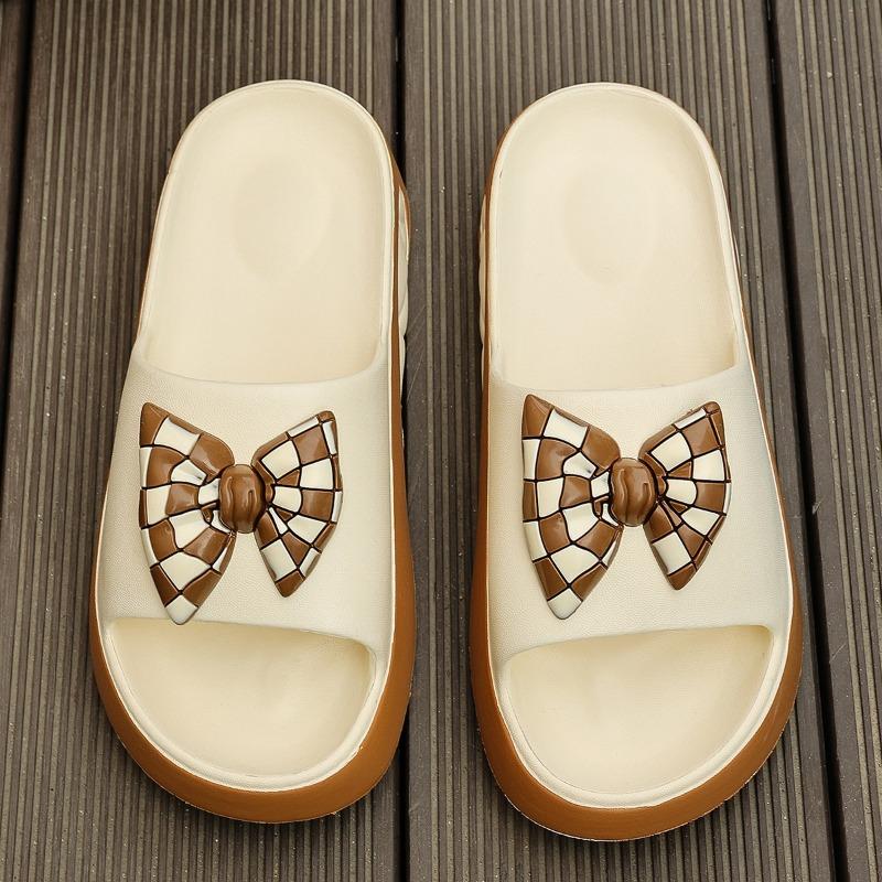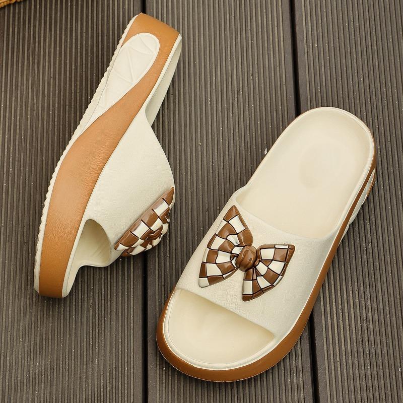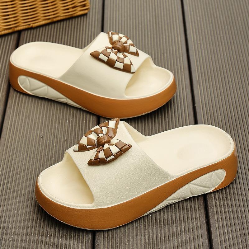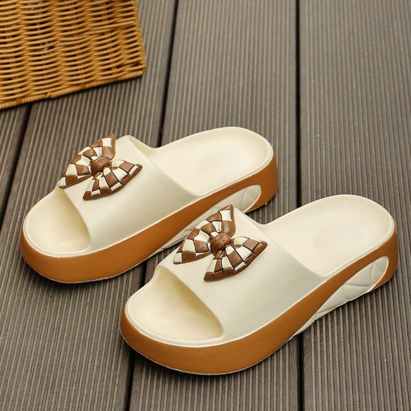 Мода 2025 Лето EVA Женские Шлепанцы Смешанных Цветов Уличные Повседневные Сандалии на Платформе с Бантом с Открытым Носком Удобные Повседневные Шлепанцы