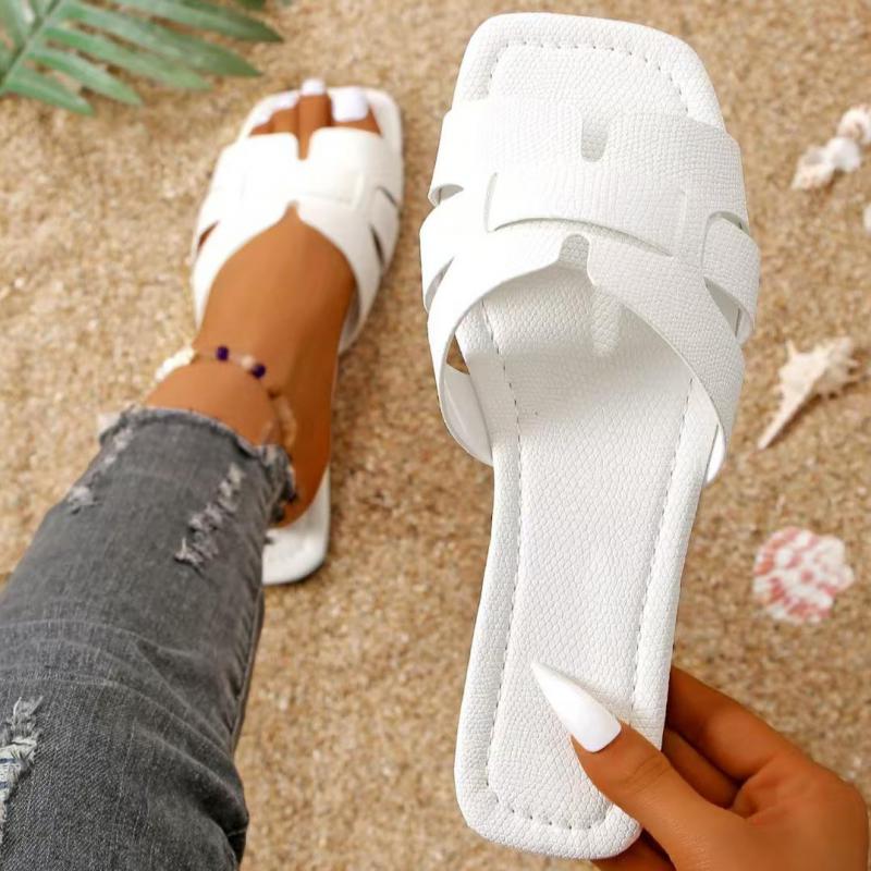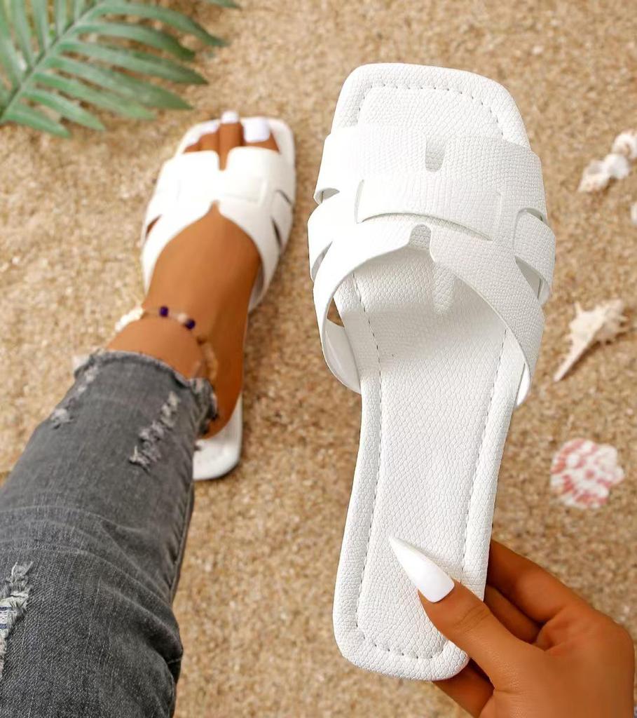 Модные белые шлепанцы на плоской подошве для женщин, летний дизайн, мягкие нескользящие шлепанцы, плетеные, с открытым носком, квадратным носком, для улицы, пляжные шлепанцы, женские