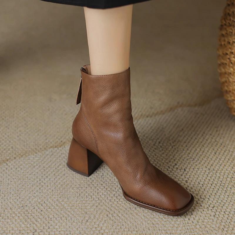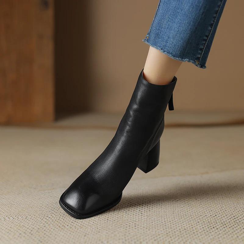 Мода 2024 Осень/зима Женские ботинки Высокие каблуки Квадратный носок Короткие ботинки Женская обувь Офисная леди Гладиатор Женская обувь Натуральная кожа