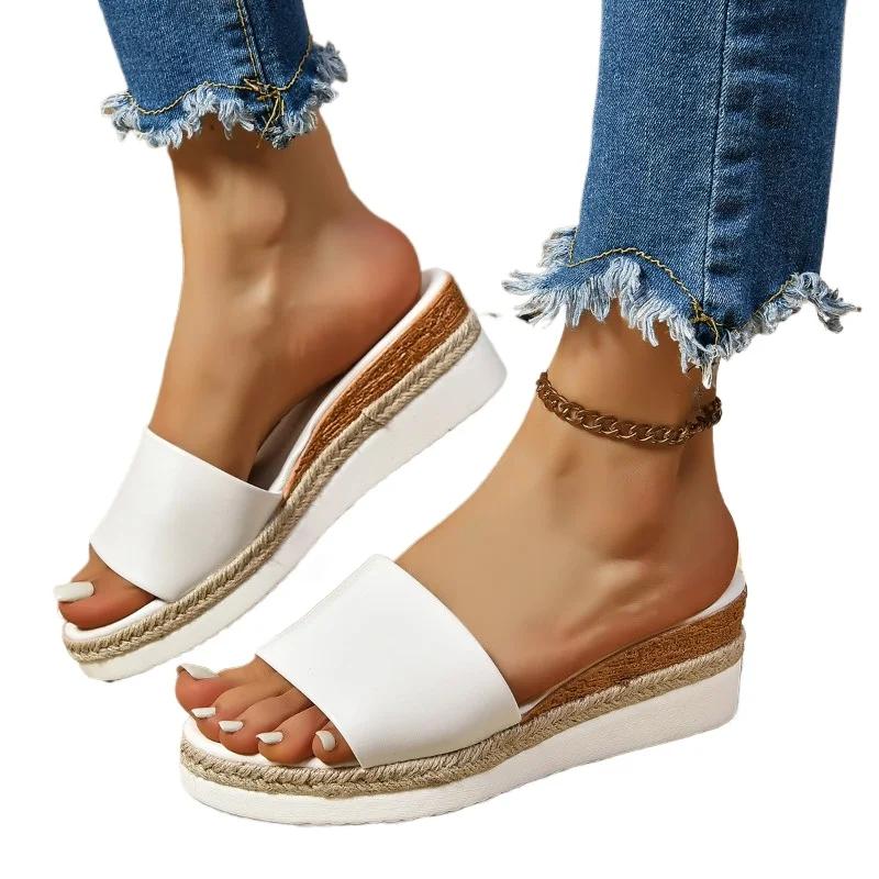 Модная женская обувь 2025 уличные шлепанцы с открытым носком женские шлепанцы на платформе повседневные шлепанцы женские с бантом на танкетке сандалии больших размеров zapatos