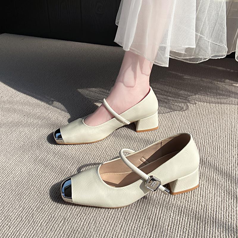Мода 2025 Горячая Распродажа Мэри Джейн Женские Туфли на Высоком Каблуке Квадратный Носок Массивный Каблук Классика Повседневные и Офисные Туфли Женские Туфли Слипоны с Неглубоким Вырезом