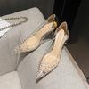 Модные хрустальные туфли-лодочки женские 2025 лето банкет красная подошва тонкий каблук балетки серебристые прозрачные с водными бриллиантами туфли на высоком каблуке женские