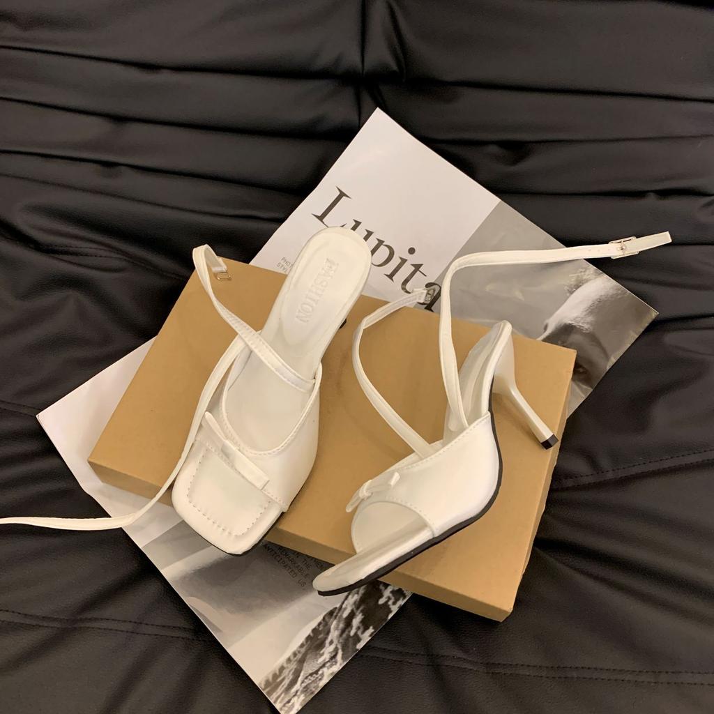 Модные шлепанцы на высоком каблуке для женщин 2025 лето новый стиль для ношения черные туфли на высоком каблуке и босоножки с бантом для женщин роскошные сандалии