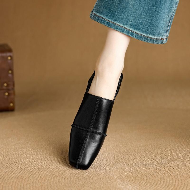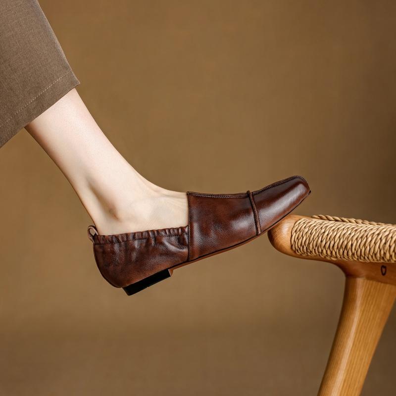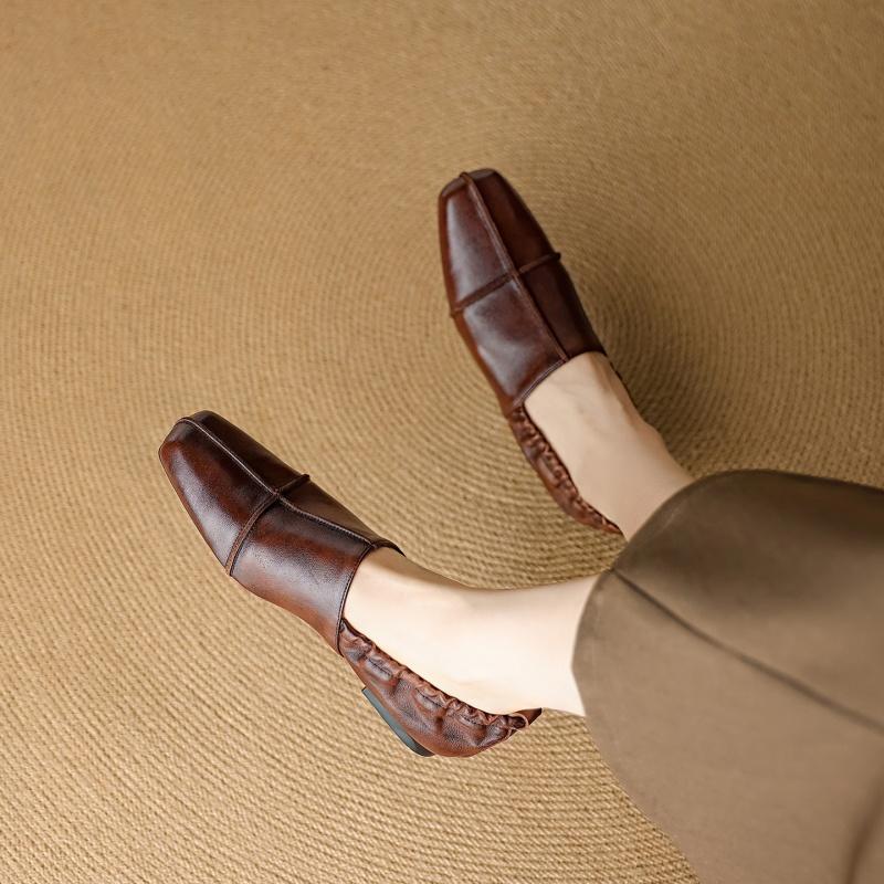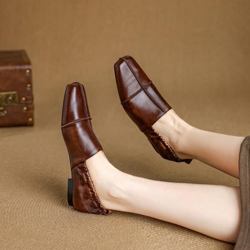 Мода 2025 НОВЫЕ Осенние Женские Лоферы Натуральная Кожа Женская Обувь Квадратный Носок Массивный Каблук Обувь Женские Балетки Мягкая Женская Обувь
