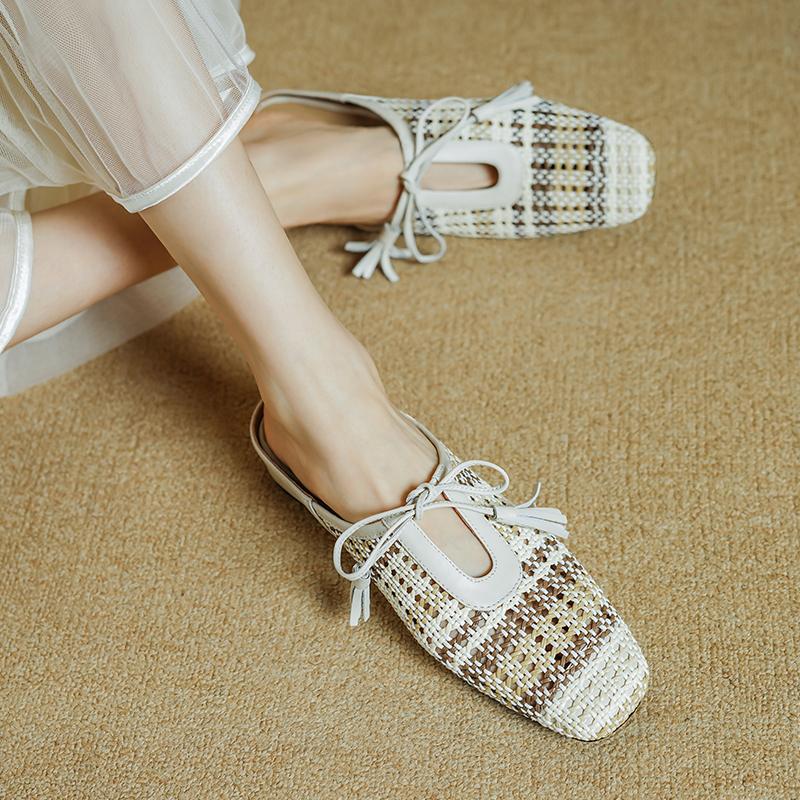 Мода 2025 Снаружи НОВЫЕ Летние Женские Мюли Женские Тапочки Лаконичные С закрытым носком С ремешком на пятке Круглый носок Низкий каблук Плетеные Современные Сандалии — купить товар онлайн с бесплатной доставкой по всему миру!