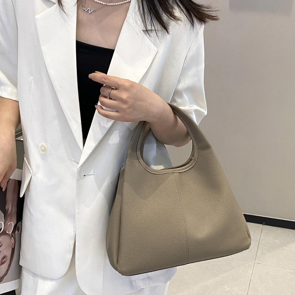 Light Luxury Real Leather Canvas Tote Bag 2025 New Style And Single Shoulder Casual Large Capacity Minimalist Handheld Bucket Bag