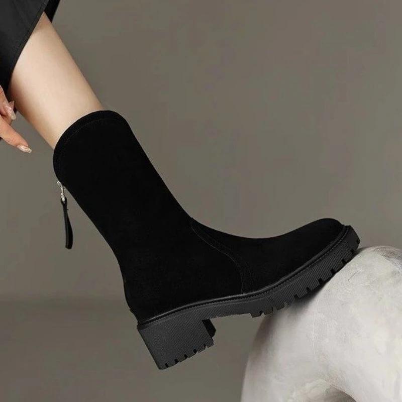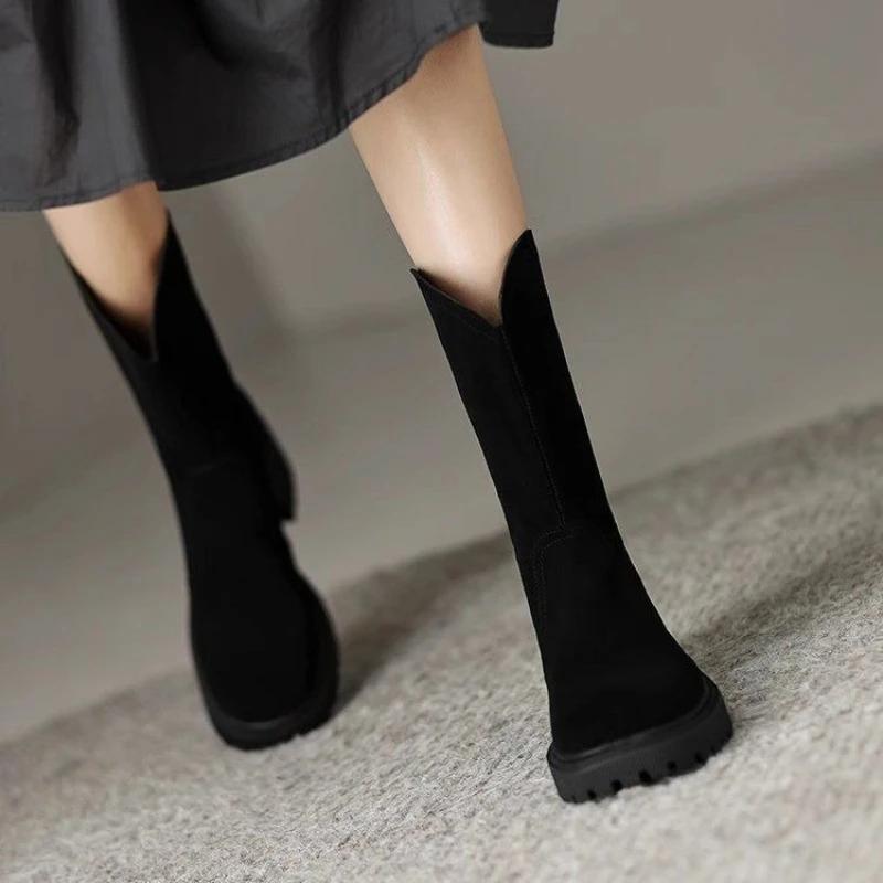 Модные коричневые полусапоги с круглым носком для женщин, британский стиль, готика, по акции, новое предложение 2025 года, трендовая готическая обувь до середины икры, женская