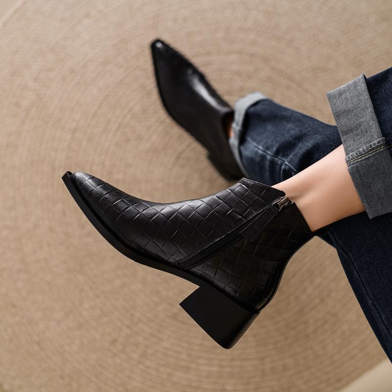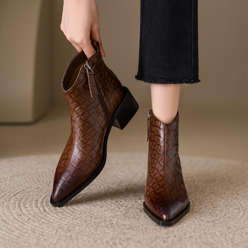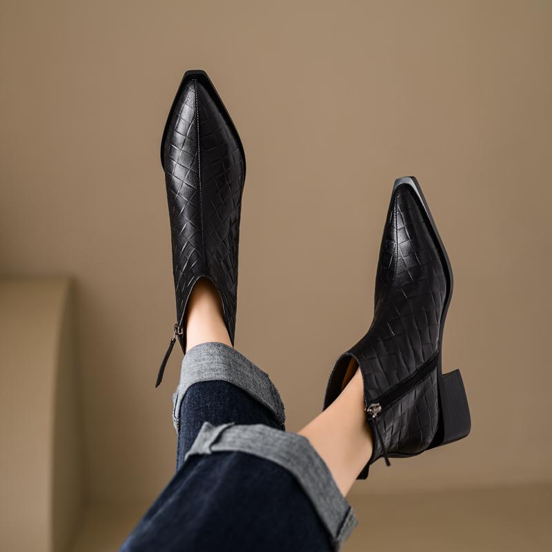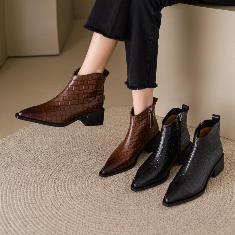 Мода 2024 Новые осенние женские ботинки Остроносые ботинки на массивном каблуке для женщин Зимние ботинки Короткие ботинки