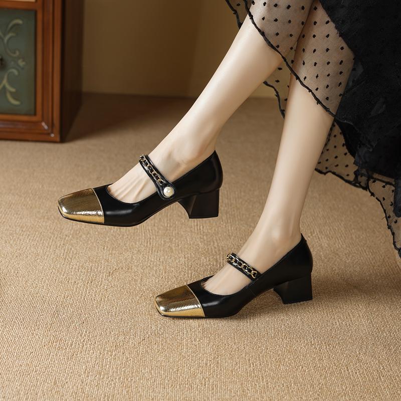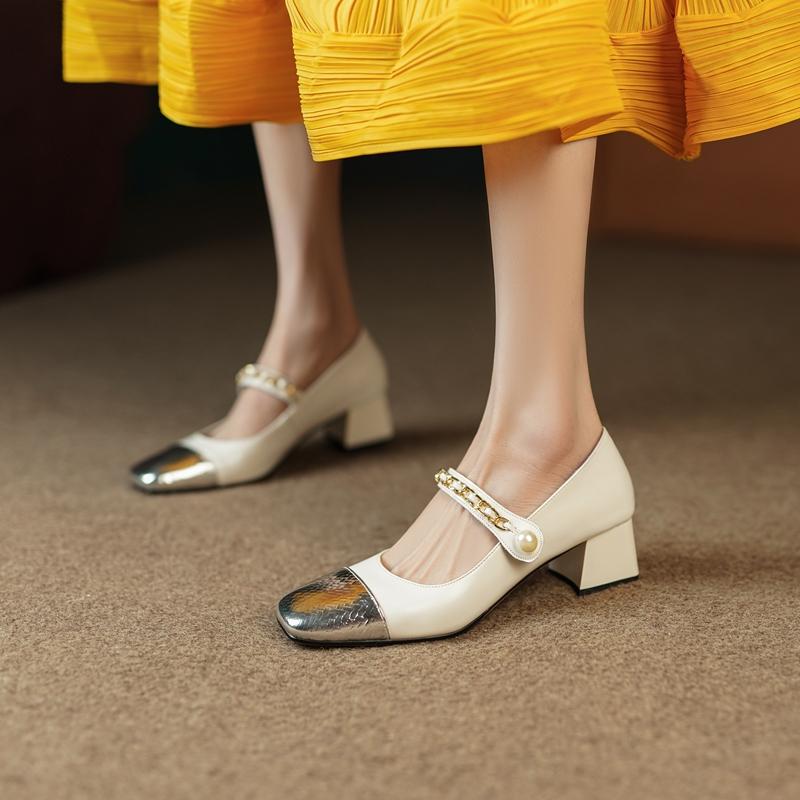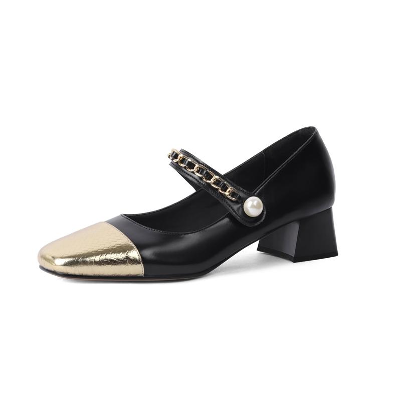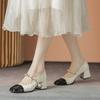 Модная женская новая замшевая цветная блочная металлическая фурнитура жемчужная пряжка ремня квадратный носок средний каблук большой размер туфли Мэри Джейн