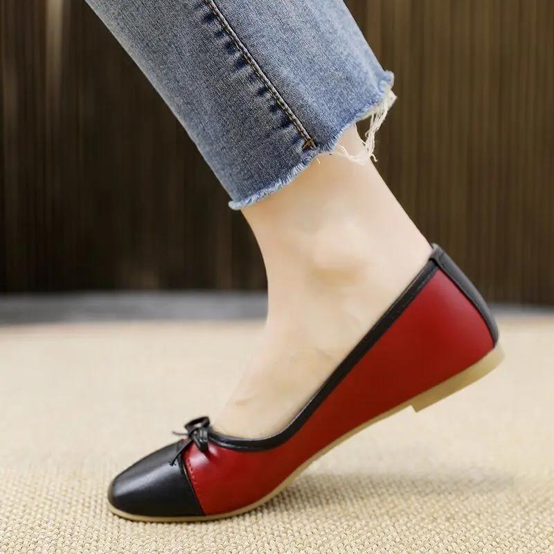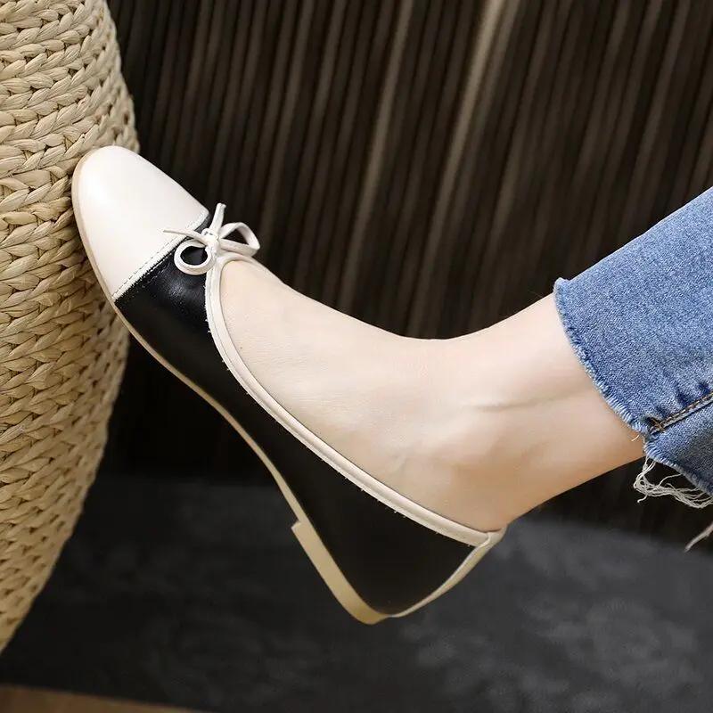 Модная обувь на низком каблуке, элегантная женская обувь каваи с бантом, балетки для женщин, балетки с круглым носком, милые мокасины по акции, подлинный бренд 39
