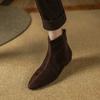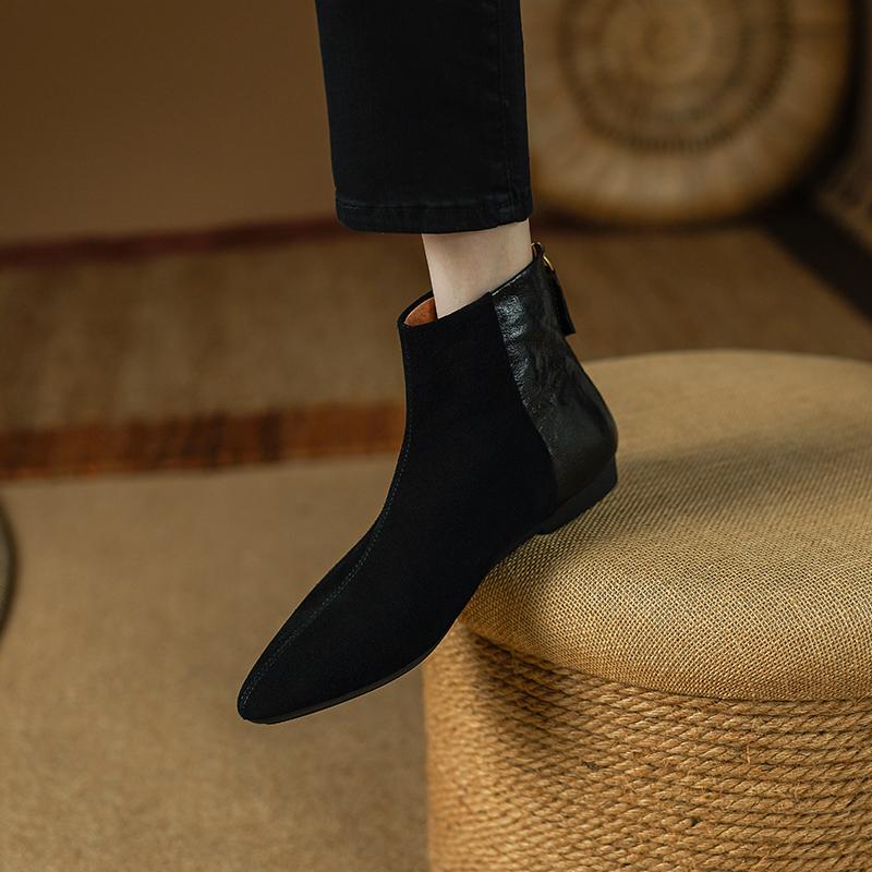 Мода 2025 НОВЫЕ Осенние Ботильоны Кожа Кид Замша Женская Обувь Острый Носок Молния Современные Ботинки Низкий Каблук Ботинки Челси