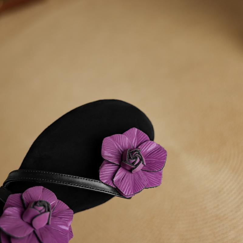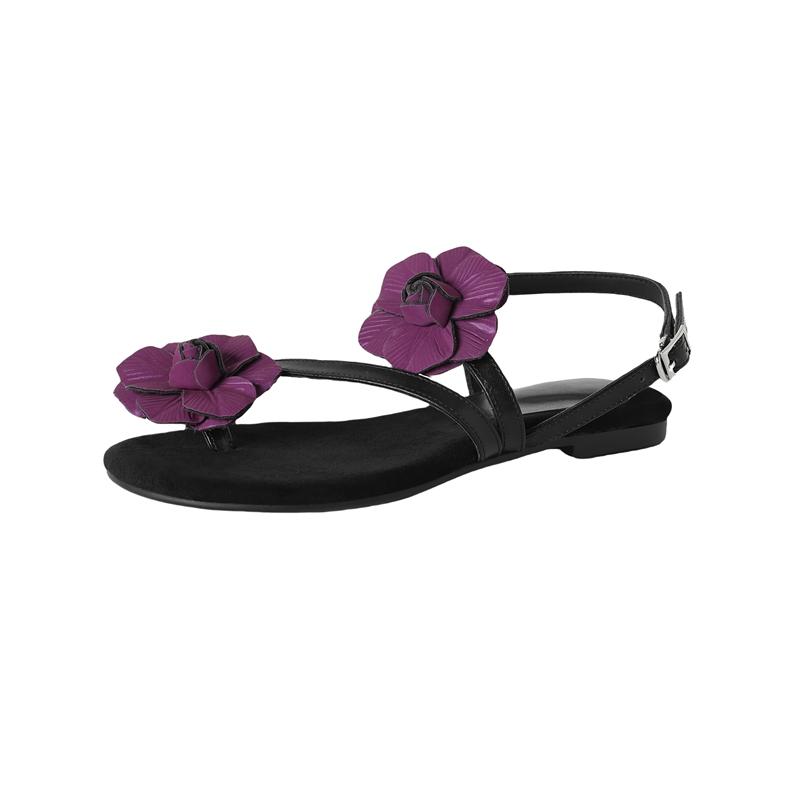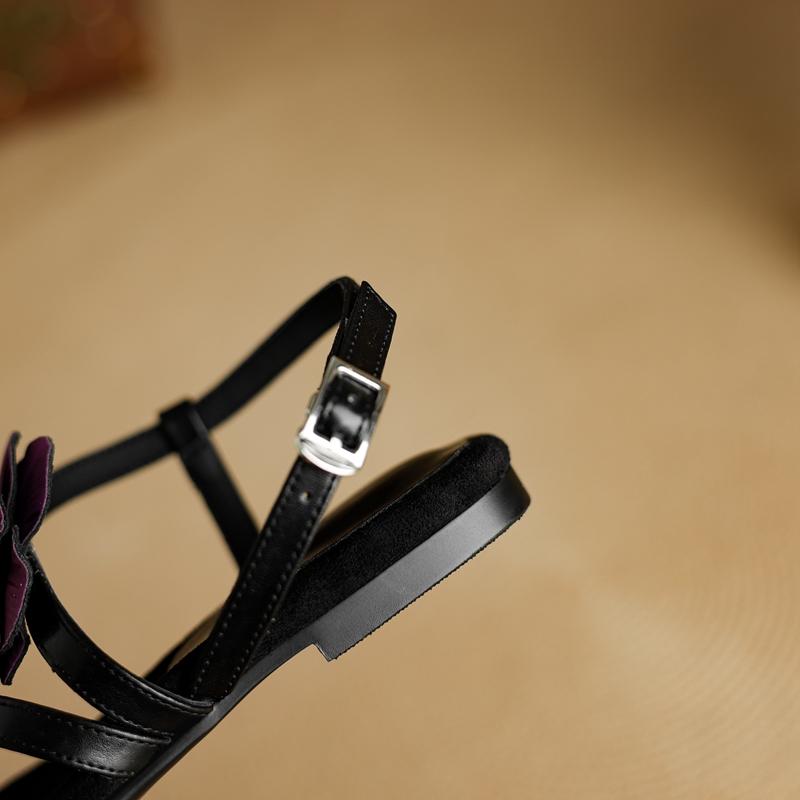 Модные женские новые кожаные сандалии из коровьей кожи с цветочным носком, открытые, с эластичной пряжкой, удобные и дышащие сандалии на низком каблуке, римские сандалии