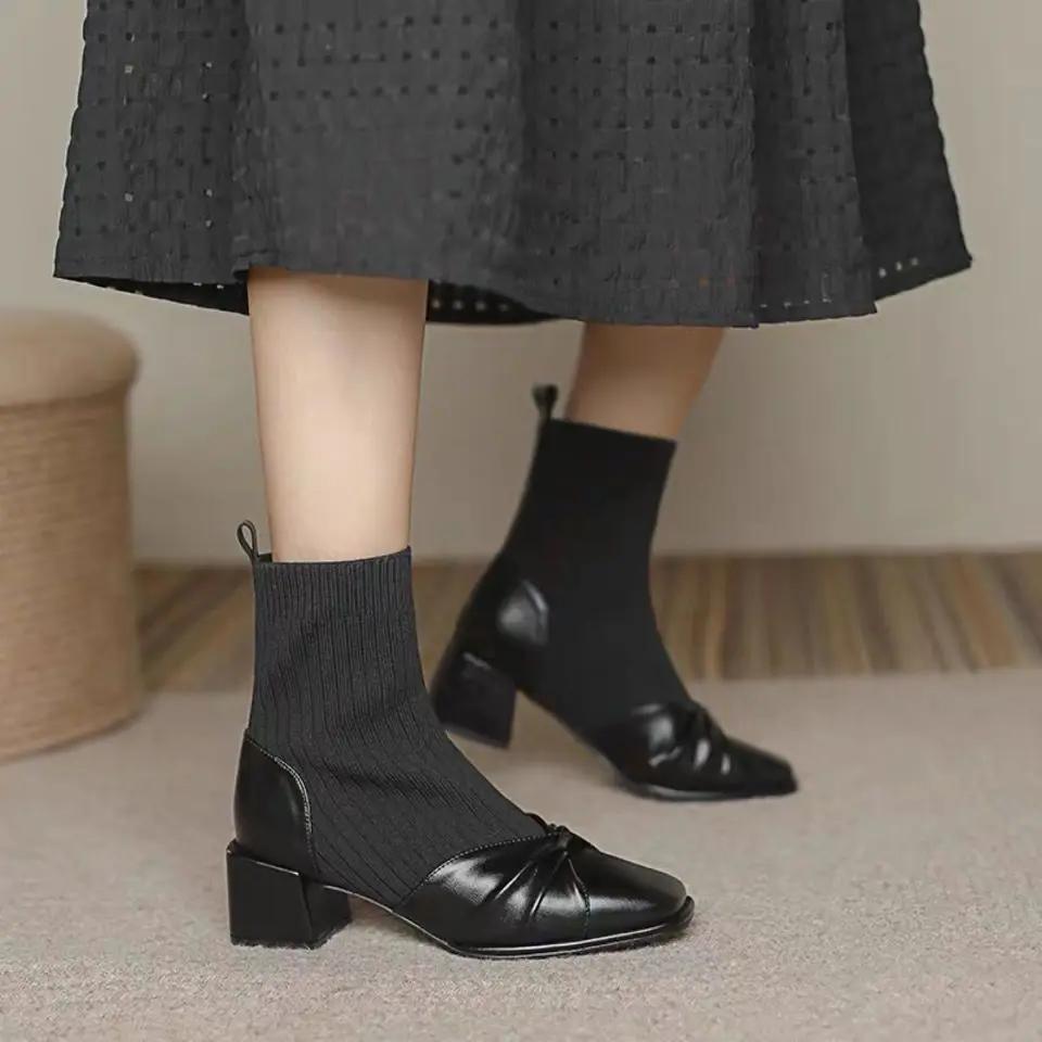 Модные осенние ботильоны для женщин Зима 2024 Эластичные женские короткие ботинки Горячие Высокое качество Шикарные и элегантные Мода Новинка Распродажа Ботильоны