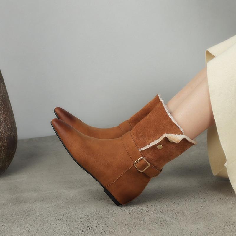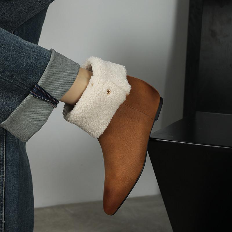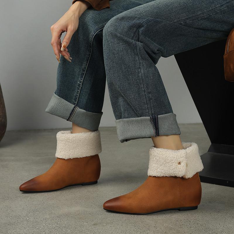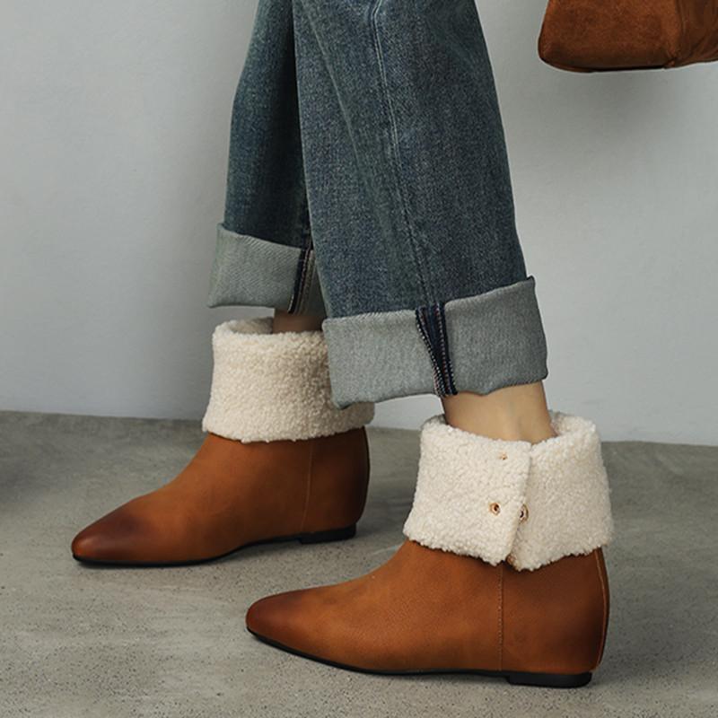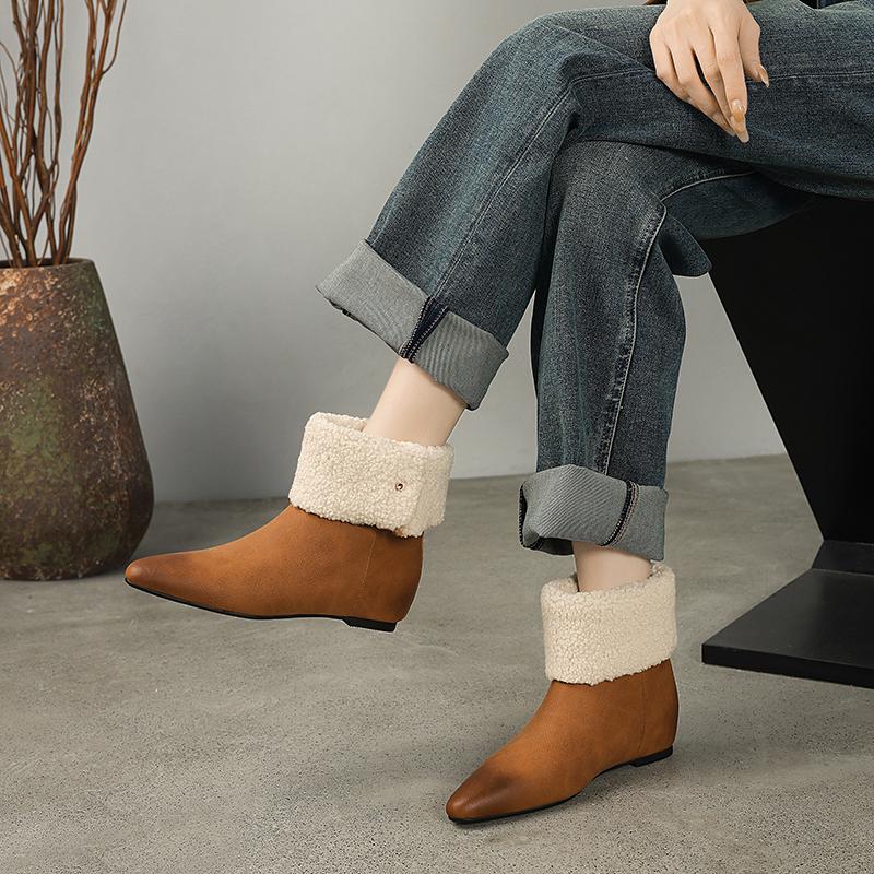 Мода 2024 Зимние Женские Сапоги Женская Обувь Круглый Носок Массивный Каблук Короткие Ботинки Женские Шерстяные Снежные Сапоги Увеличивающая Рост Современная Обувь