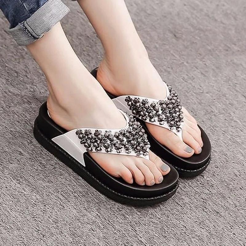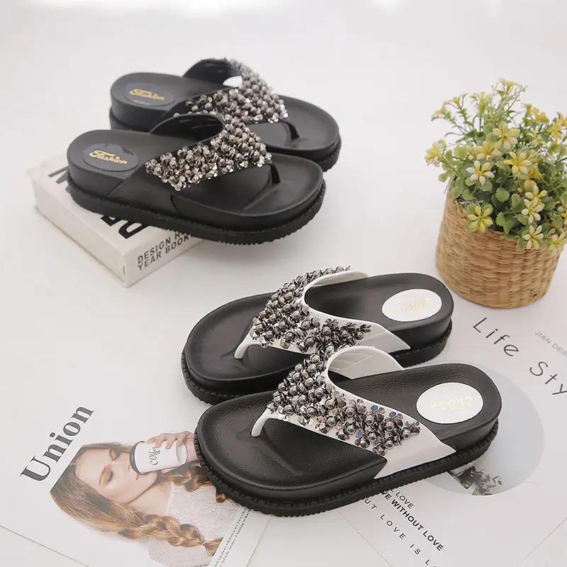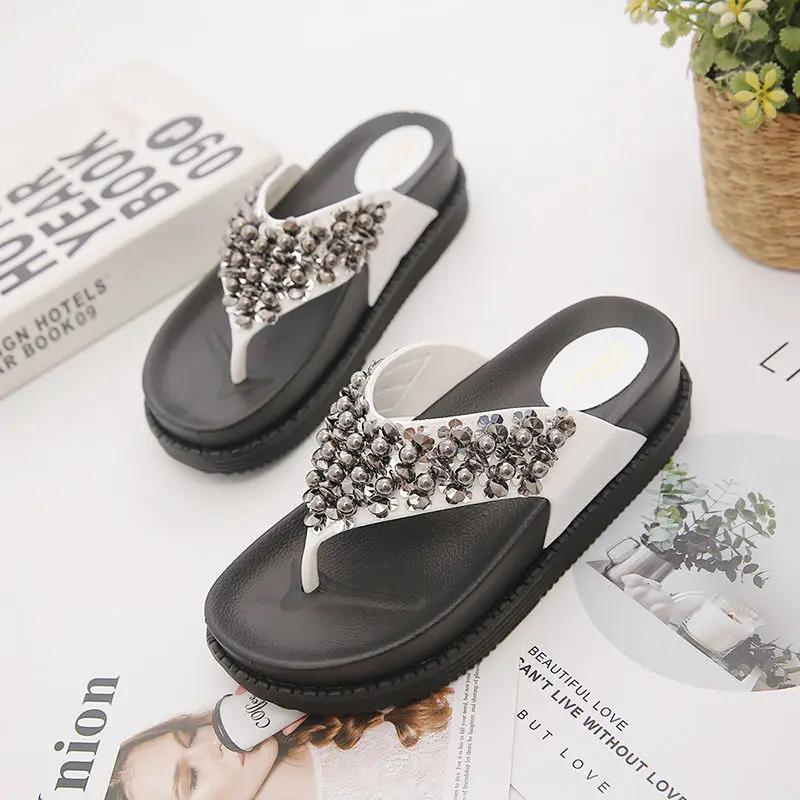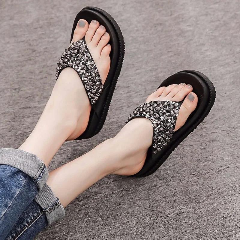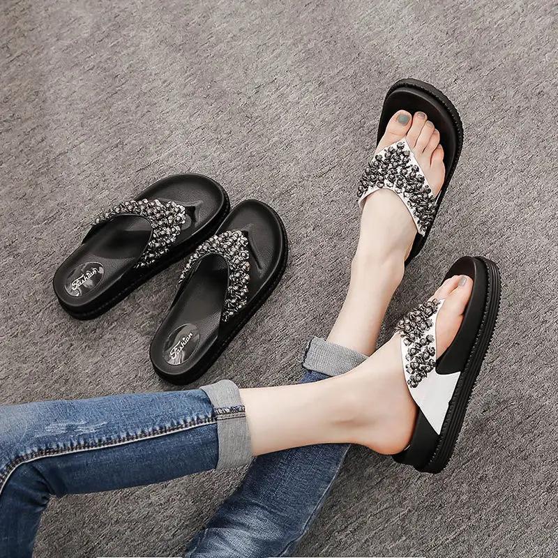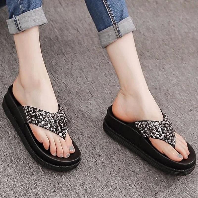 Модные высокие шлепанцы с открытым носком, черные домашние женские тапочки и женские сандалии, обувь для пляжа, платформа, шлепанцы для улицы B G