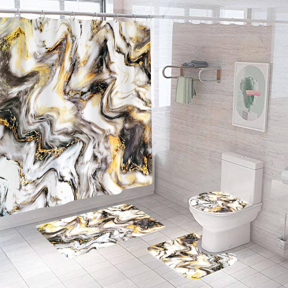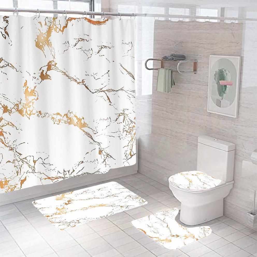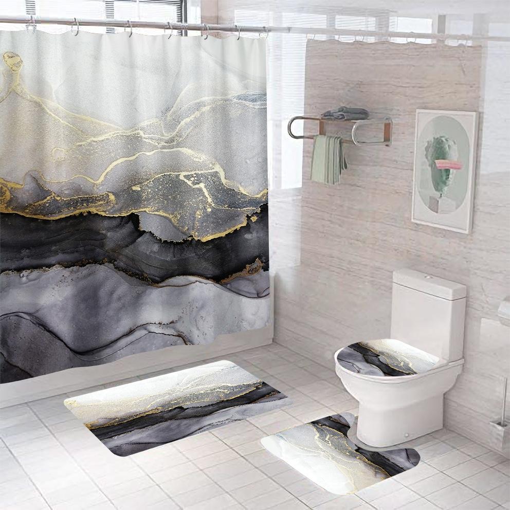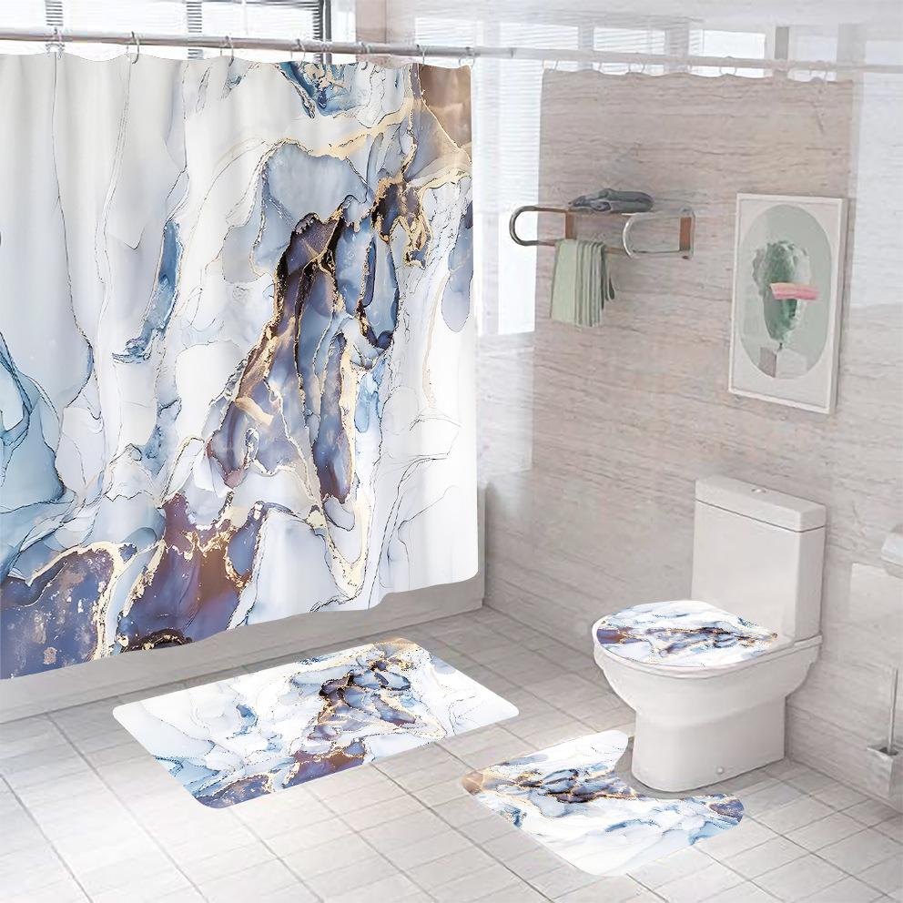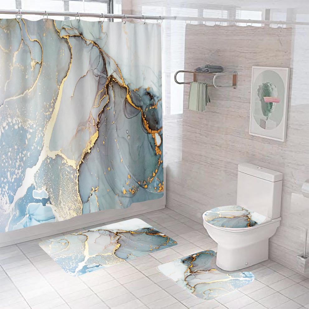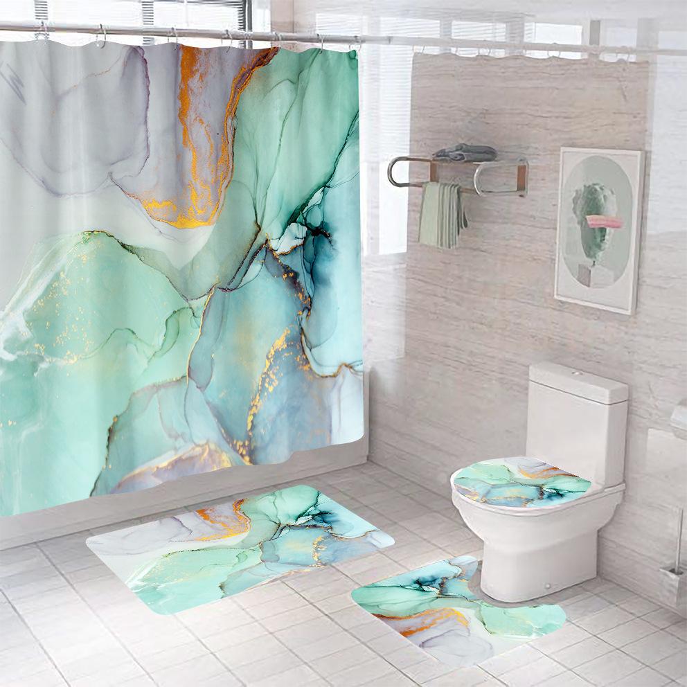 Занавеска для душа в ванной из четырех частей, цифровая печать, мраморная, водонепроницаемая, занавеска-перегородка для туалета, коврик для ванной