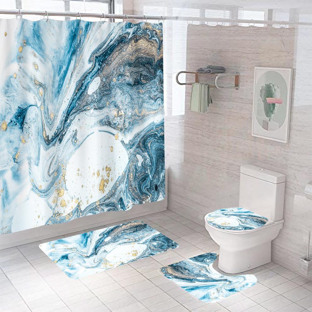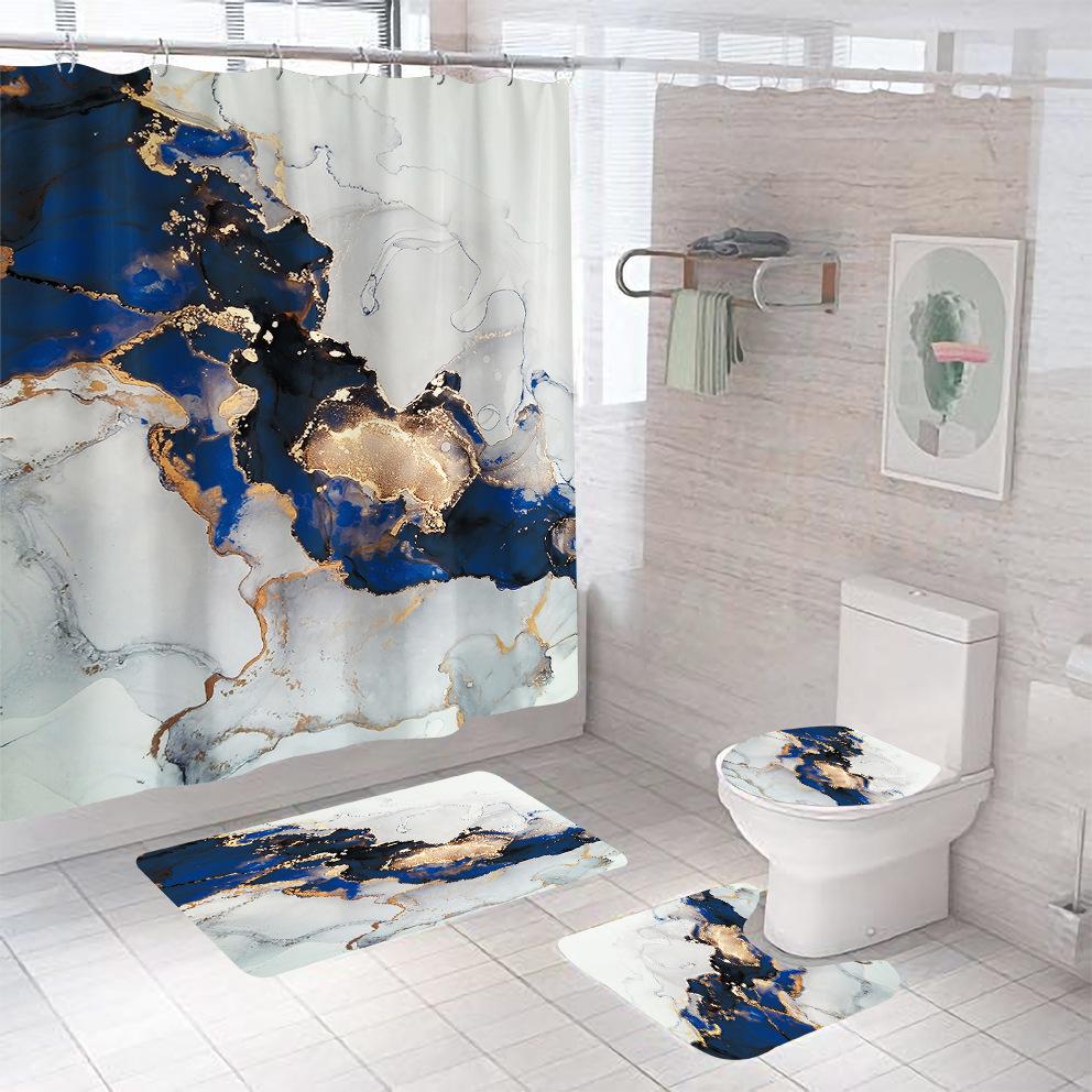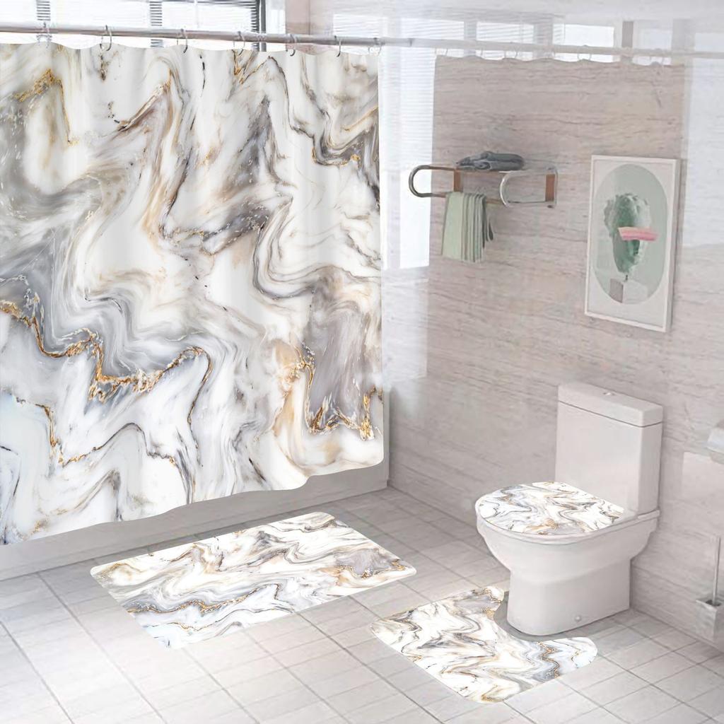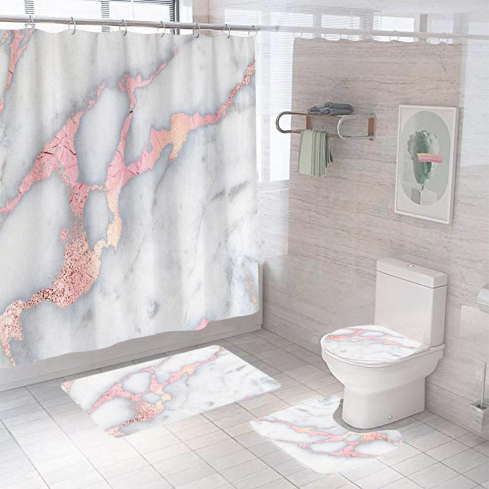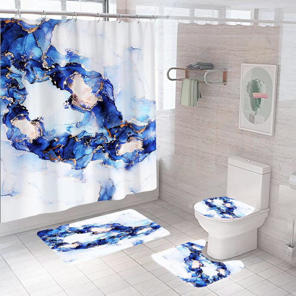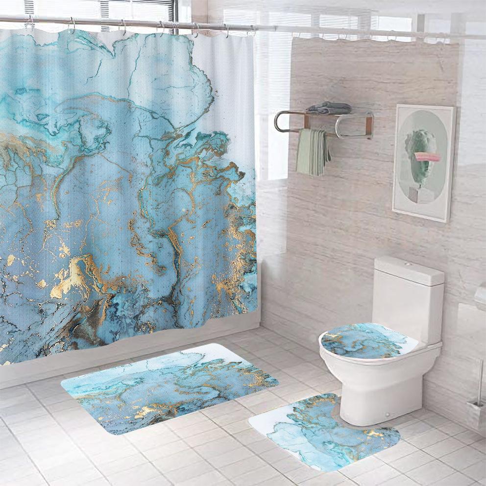 Занавеска для душа в ванной из четырех частей, цифровая печать, мраморная, водонепроницаемая, занавеска-перегородка для туалета, коврик для ванной