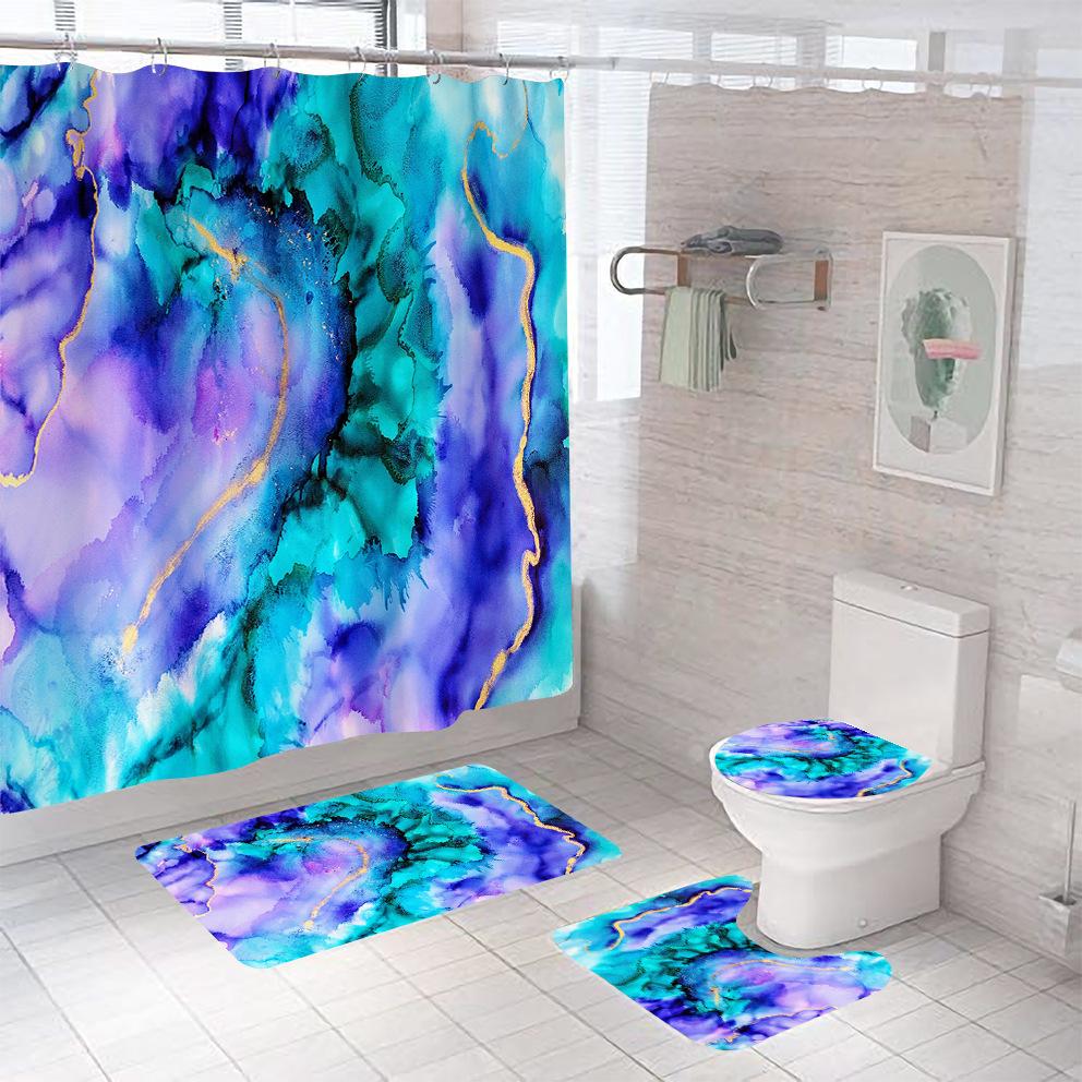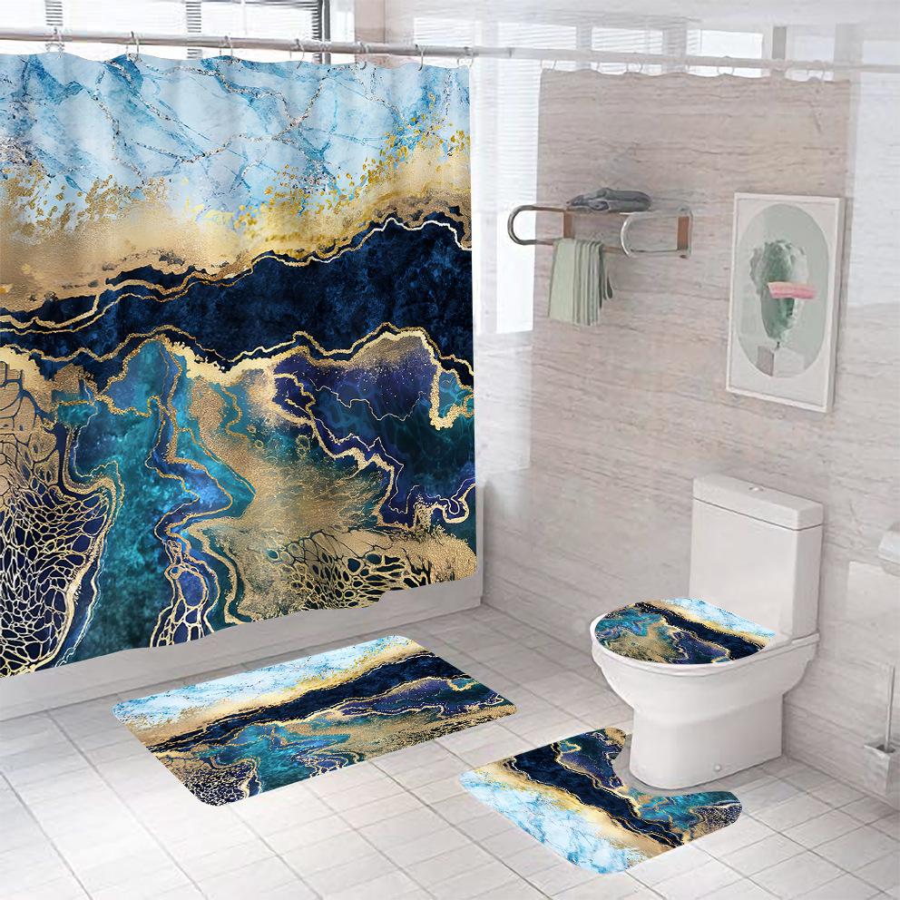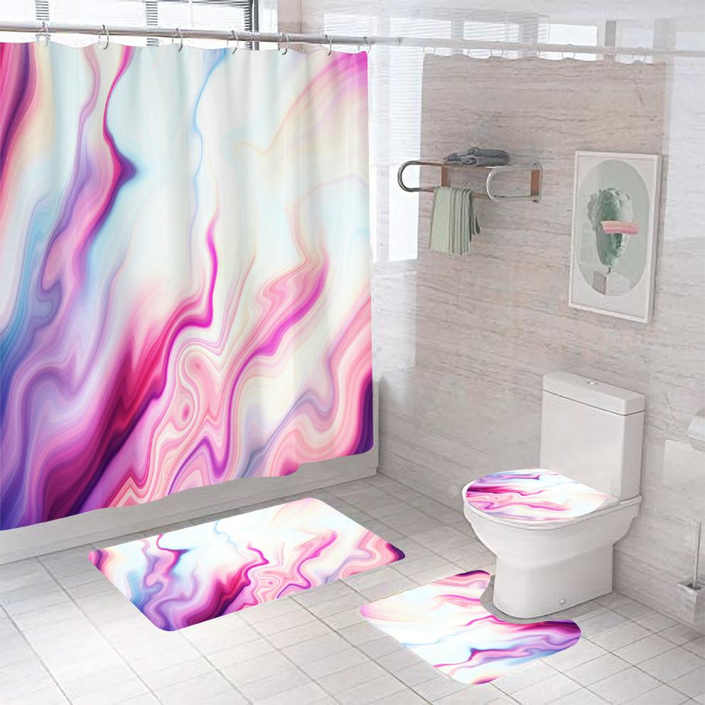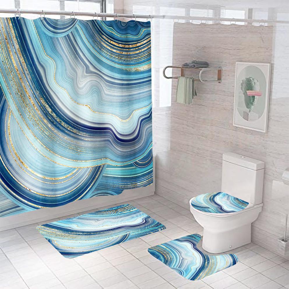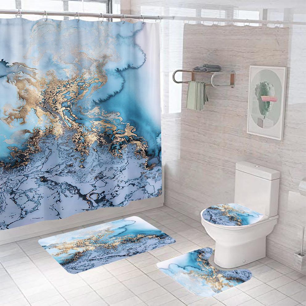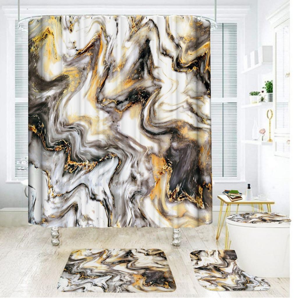 Занавеска для душа в ванной из четырех частей, цифровая печать, мраморная, водонепроницаемая, занавеска-перегородка для туалета, коврик для ванной