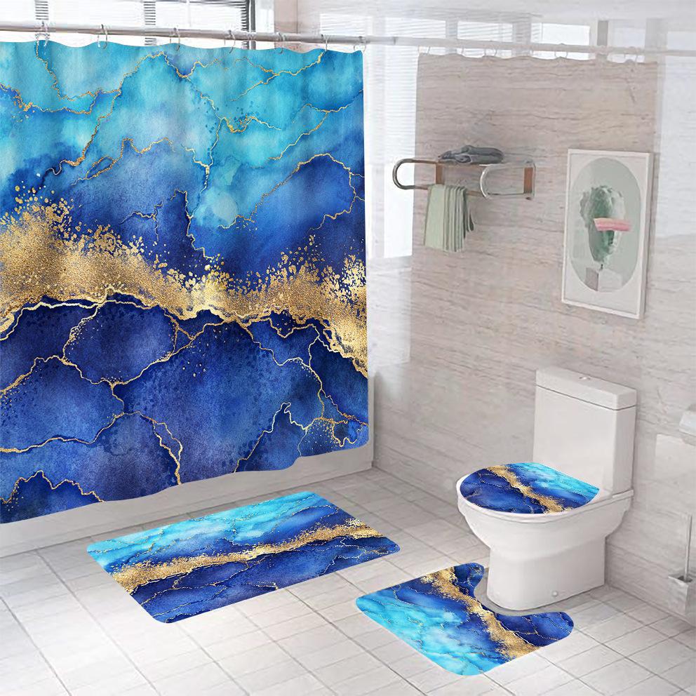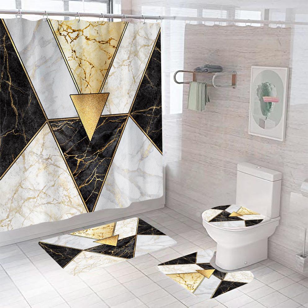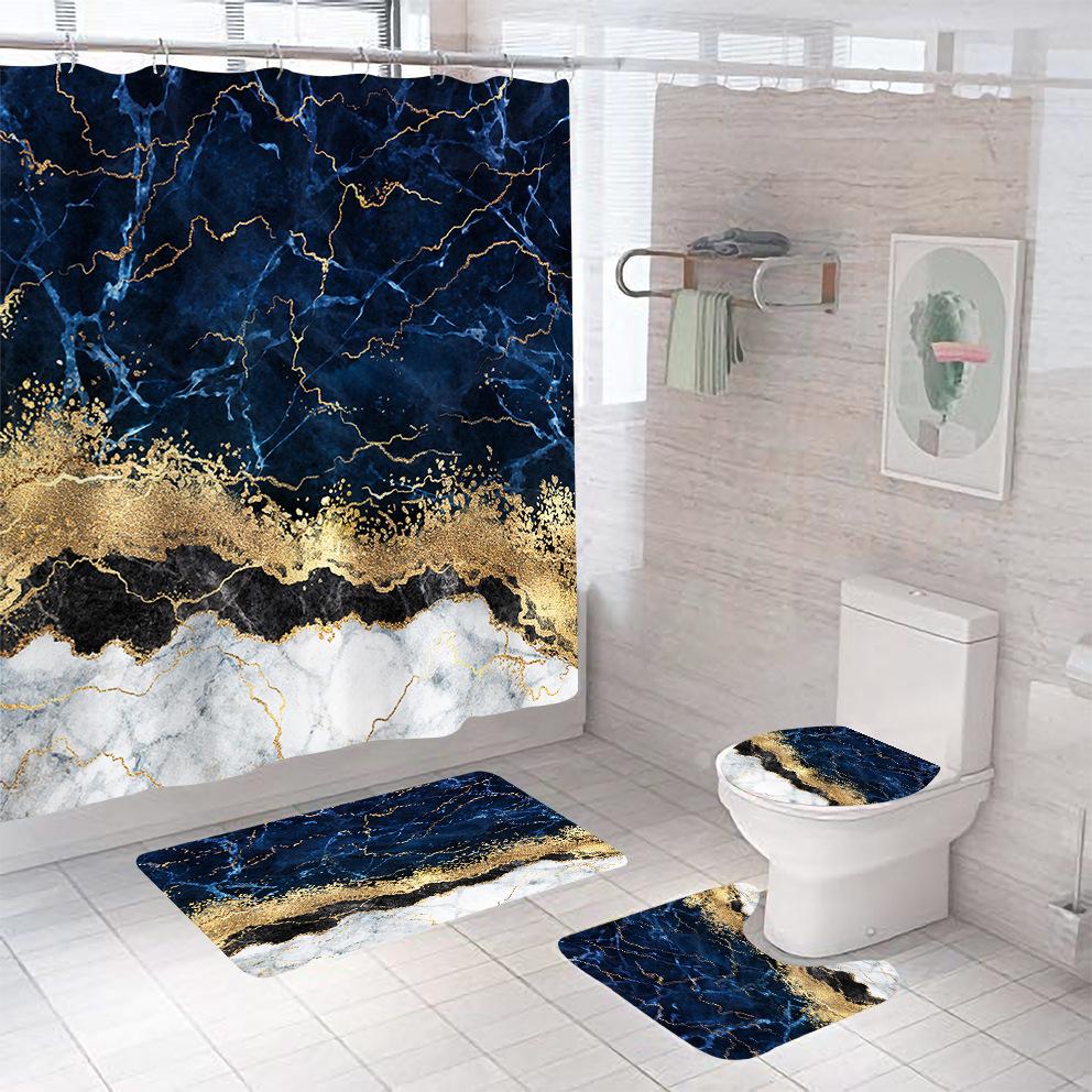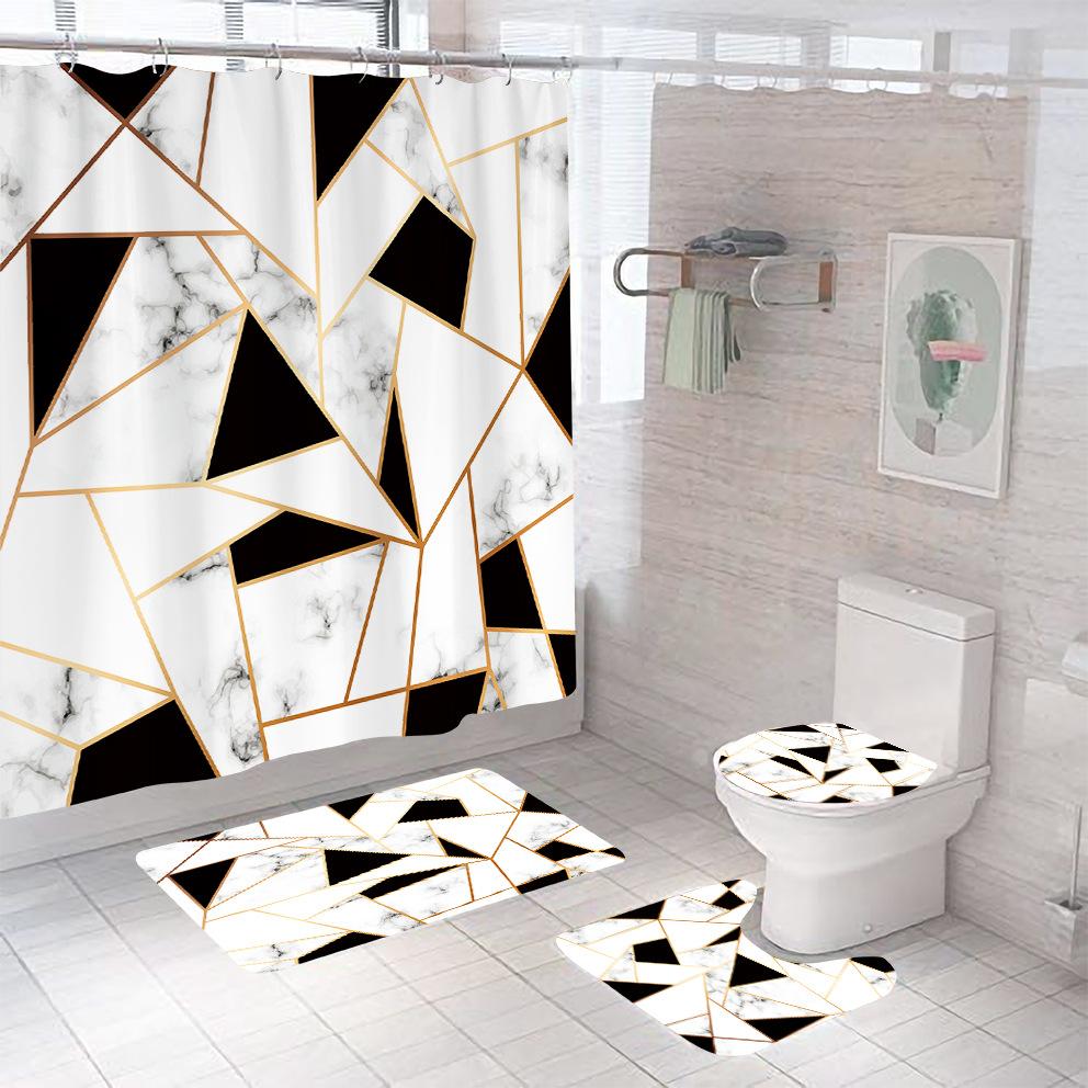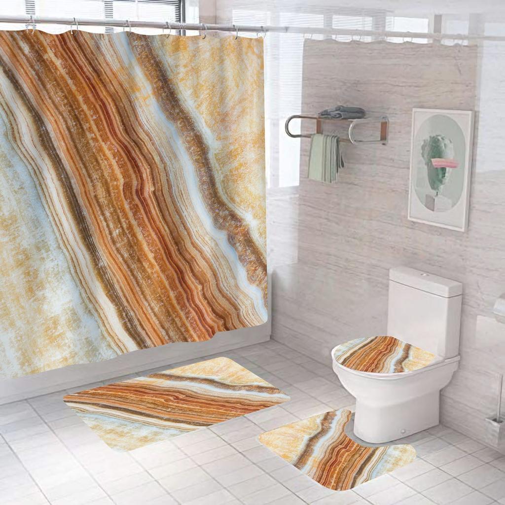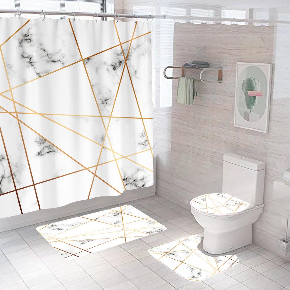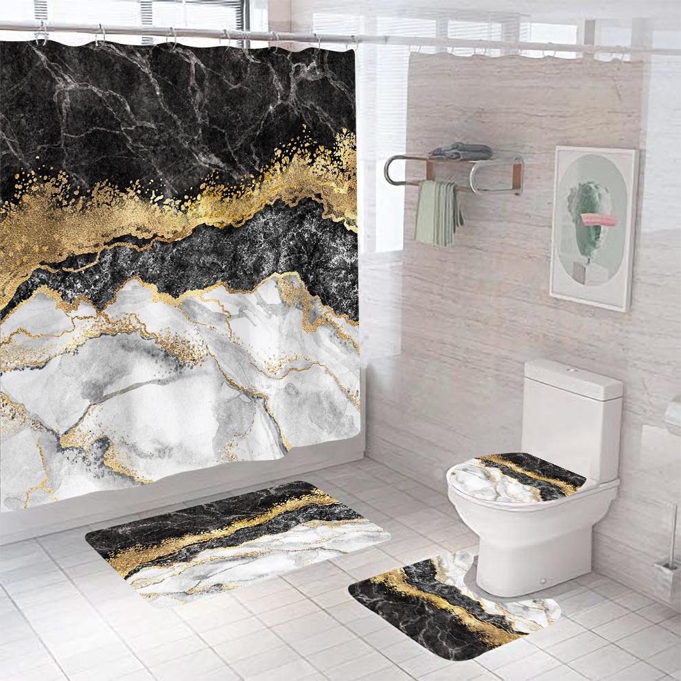 Занавеска для душа в ванной из четырех частей, цифровая печать, мраморная, водонепроницаемая, занавеска-перегородка для туалета, коврик для ванной