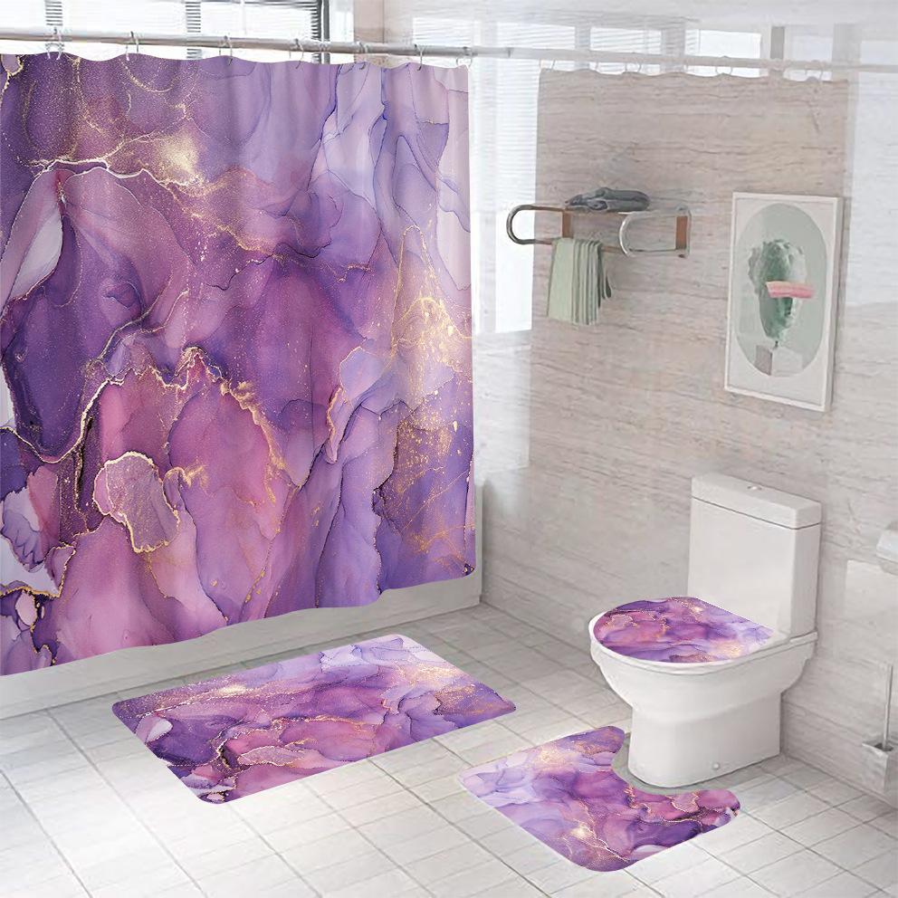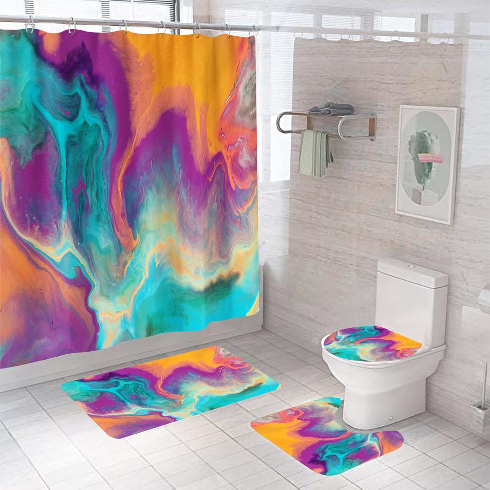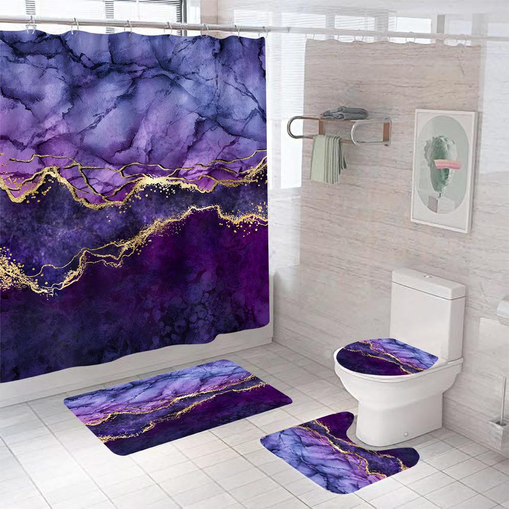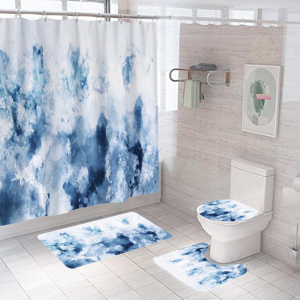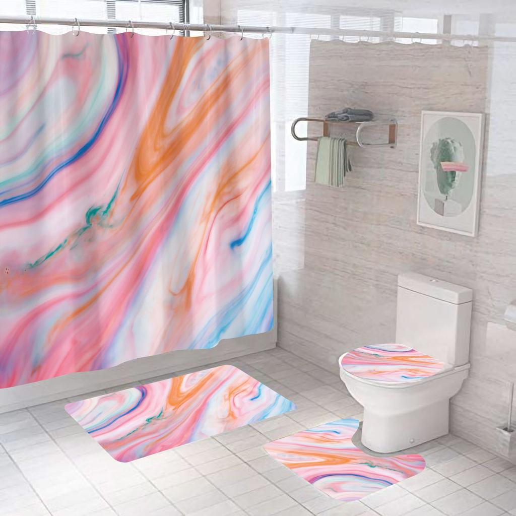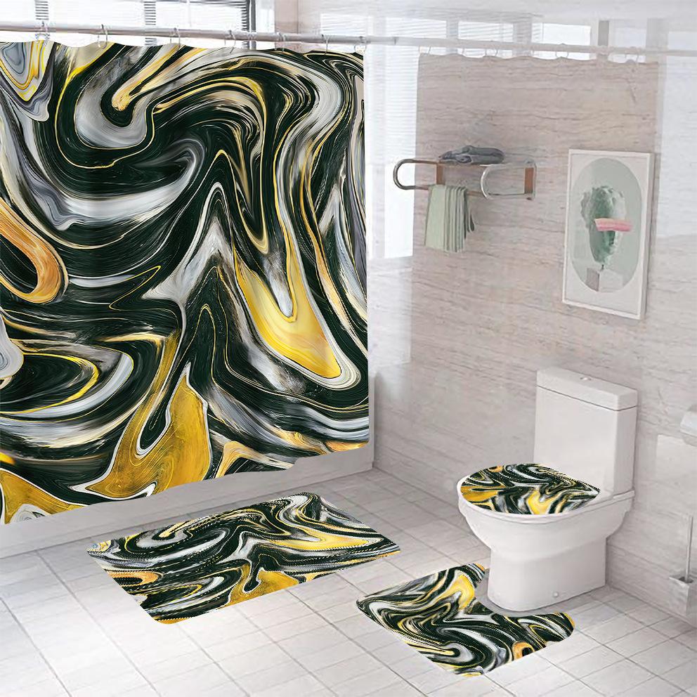 Занавеска для душа в ванной из четырех частей, цифровая печать, мраморная, водонепроницаемая, занавеска-перегородка для туалета, коврик для ванной