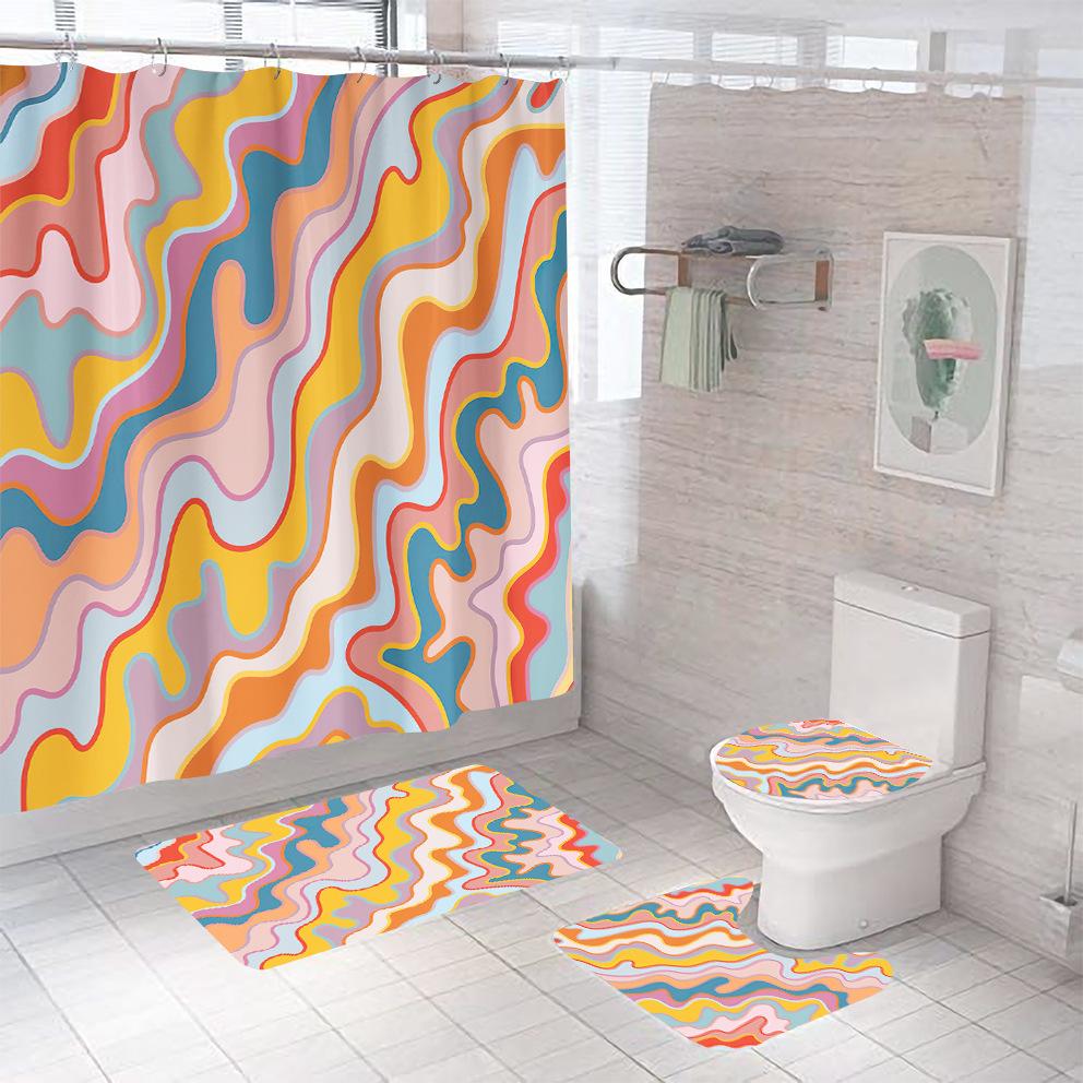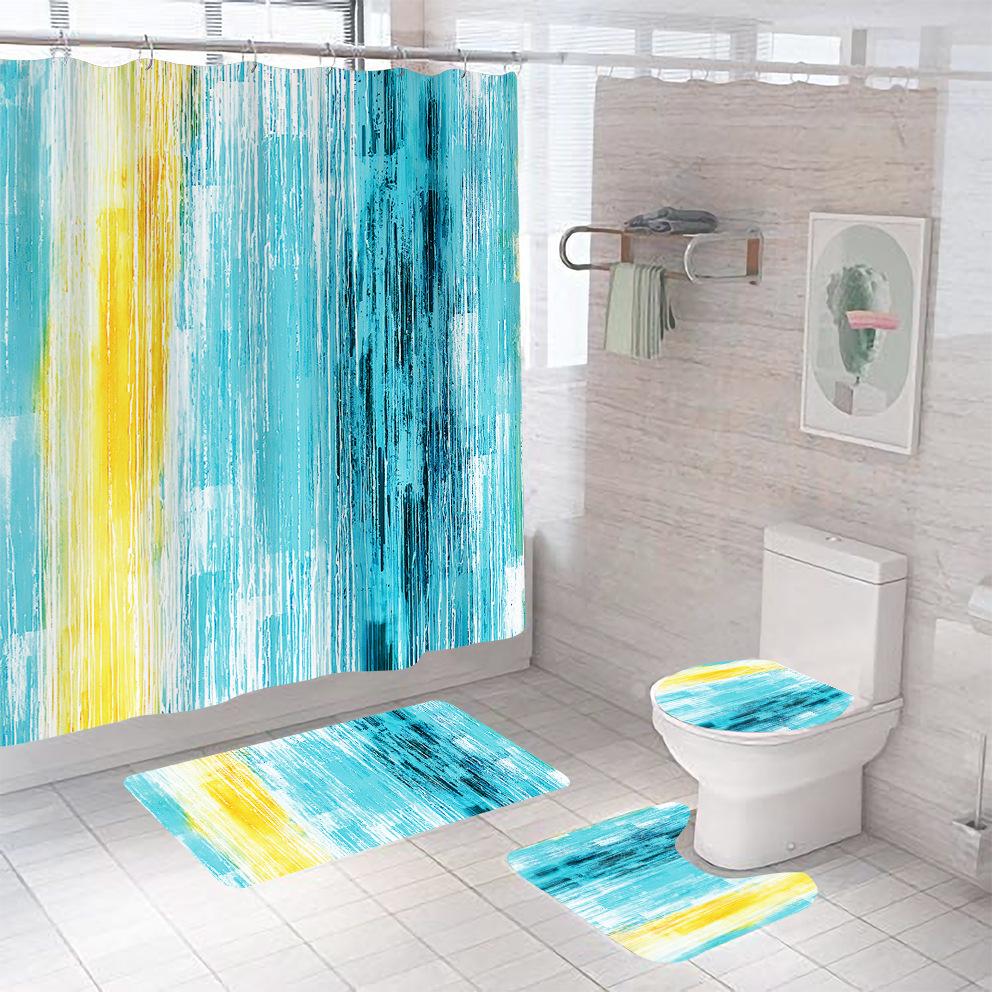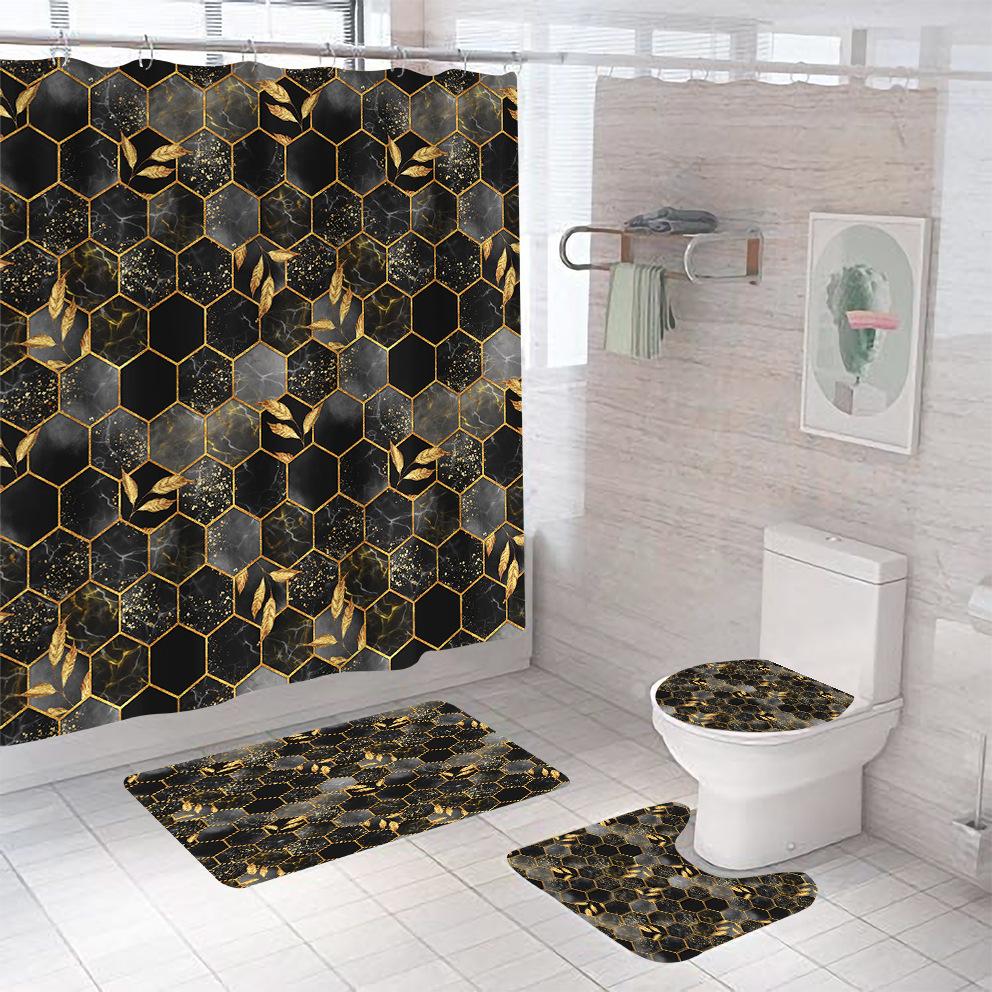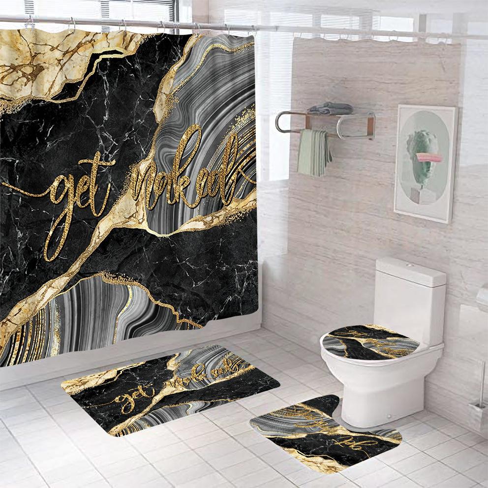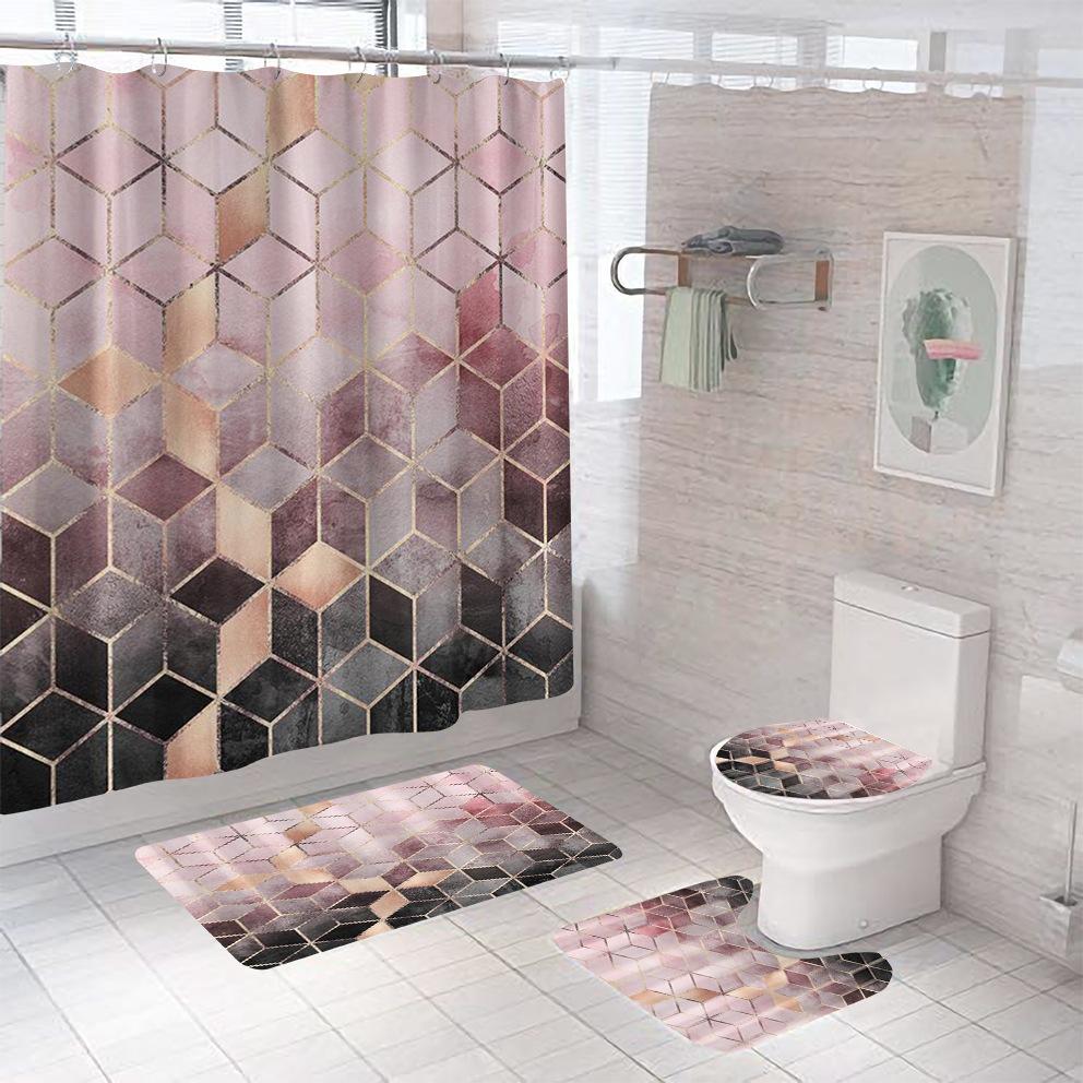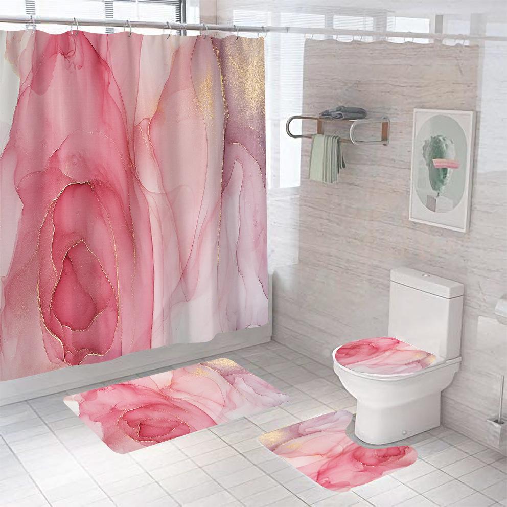 Занавеска для душа в ванной из четырех частей, цифровая печать, мраморная, водонепроницаемая, занавеска-перегородка для туалета, коврик для ванной