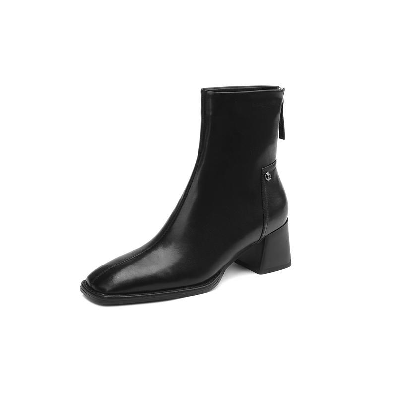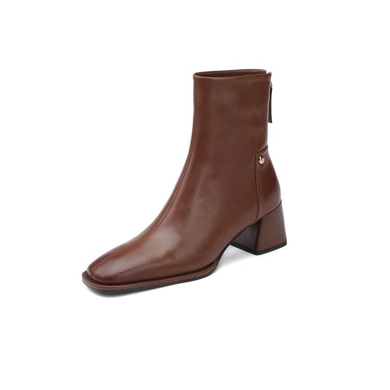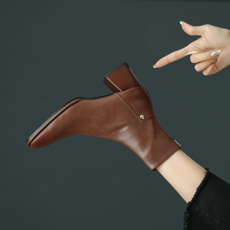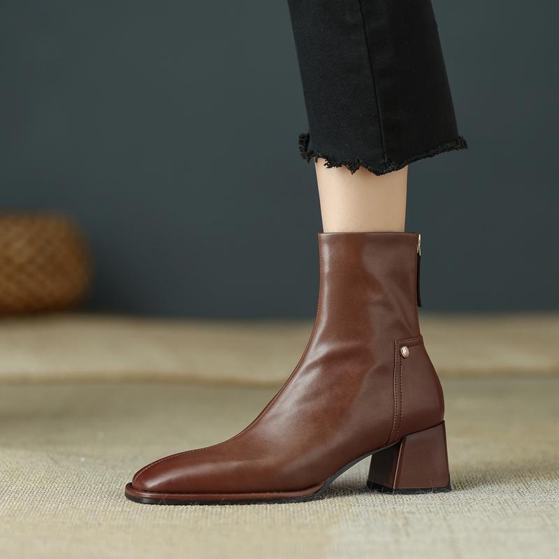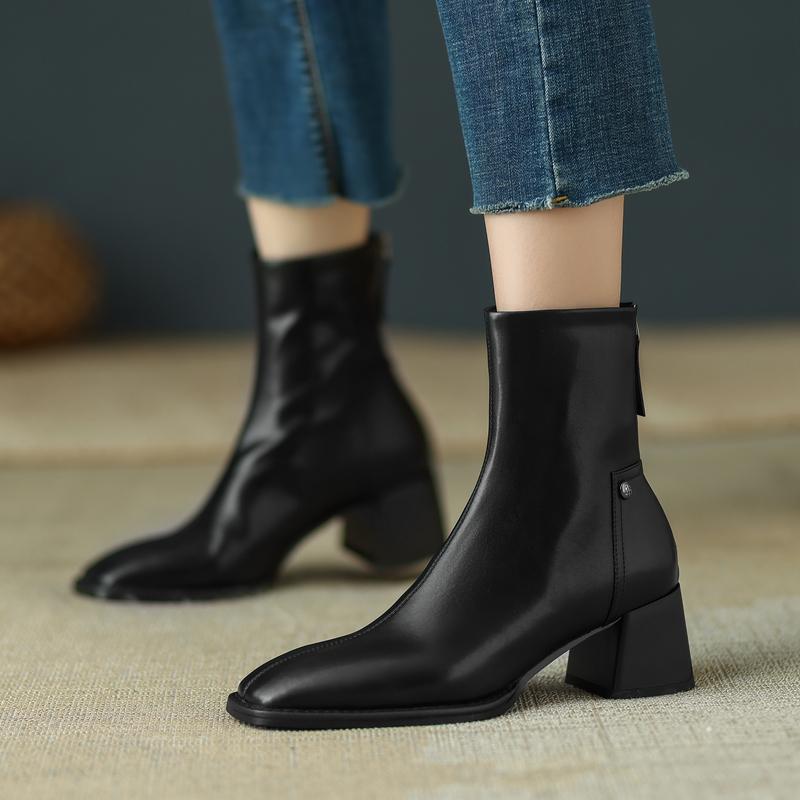 Модная женская новая осенняя обувь с квадратным носком из натуральной кожи телячьей кожи, с металлическими заклепками, на молнии, на высоком каблуке, плюс маленький размер, короткие ботинки челси