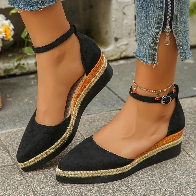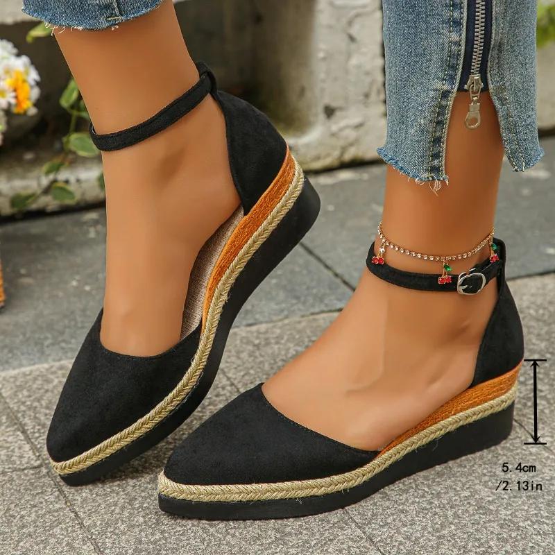 Модная женская обувь с закрытым носком, женские сандалии 2025, горячая распродажа, новые сандалии кэжуал с круглым носком, женские однотонные туфли на танкетке высокого качества