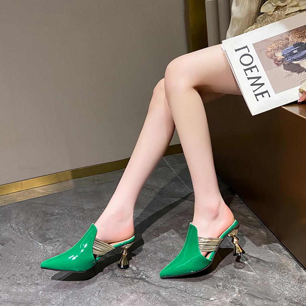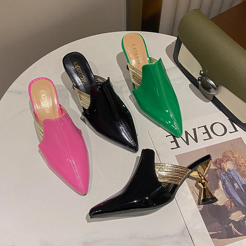 Модные тапочки Женские Летние Женские Туфли Закрытый Носок На Каблуке Мюли Шлепанцы 2025 Заостренный Высокий Мягкий Тонкий Сексуальный Женский Обувь Тапочки Каблуки Sl