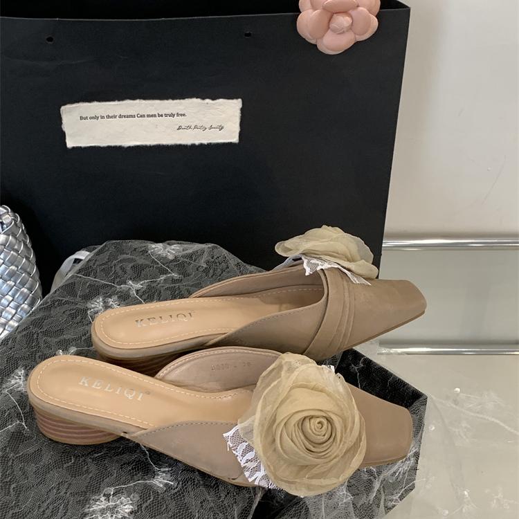 Модные шлепанцы женские летние туфли с цветком квадратный каблук закрытый носок шлепанцы блочный ретро цветочный квадратный каблук обувь женские шлепанцы уличные ков