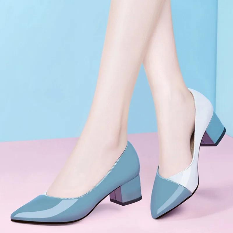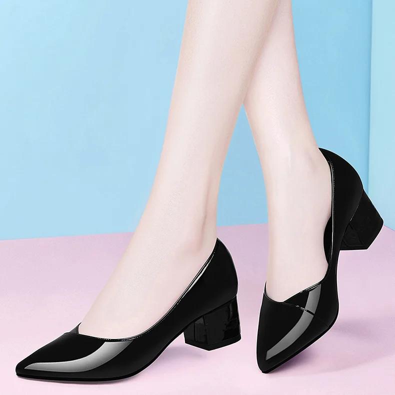 Модная женская обувь Массивный каблук Женские туфли Блок-каблук со средним острым носком Мокасины Без застежки Быстрая доставка Люксовый бренд 39
