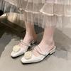 Модные мюли для женщин 2025, квадратный каблук, закрытый носок, туфли на низком и высоком каблуке, женские шлепанцы с блочным каблуком, цветочные — купить товар онлайн с бесплатной доставкой по всему миру!