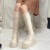 Модная шнуровка Зима 2025 Сапоги до колена Женские со шнуровкой Платформа Длинные сапоги для женщин Водонепроницаемые Демисезонные Рабочие Весенние Новые
