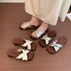 Модные тапочки Женские летние шлепанцы Низкий бант Резиновые шлепанцы Пантофли Гавайские 2025 Плоские Синтетическая ткань Рим Ретро