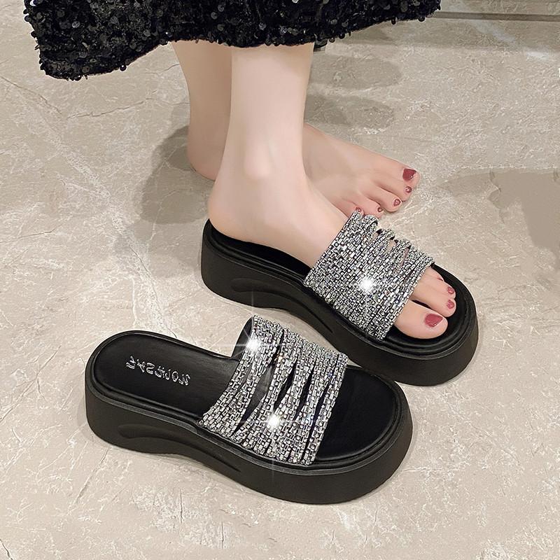 Модная обувь, блестящие шлепанцы, домашние тапочки, шлепанцы на платформе, женские модные желе 2025 лето, роскошные мягкие повседневные хрустальные тапочки для отдыха