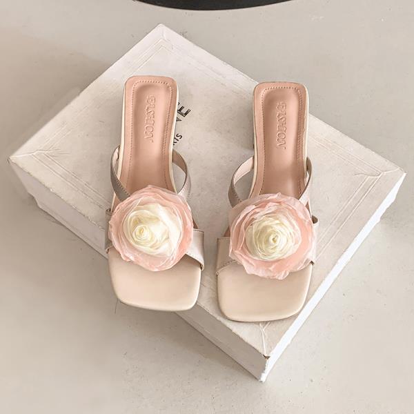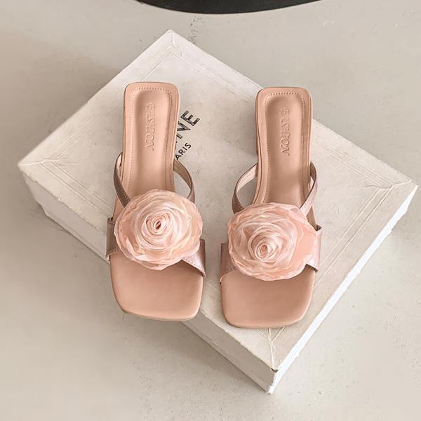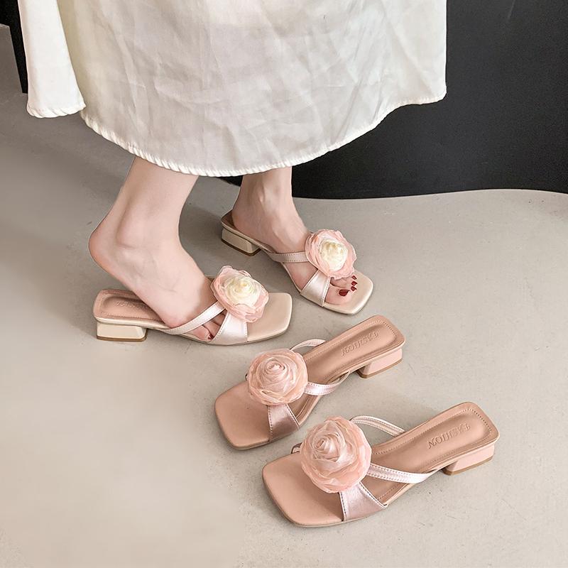 Мода Обувь Большого Размера Женская 2025 Шлепанцы Повседневные Квадратный каблук Цветок Сланцы Женские Пляжные Роскошные Блок Сабо Слайды Цветочные Большой Размер Квадратный