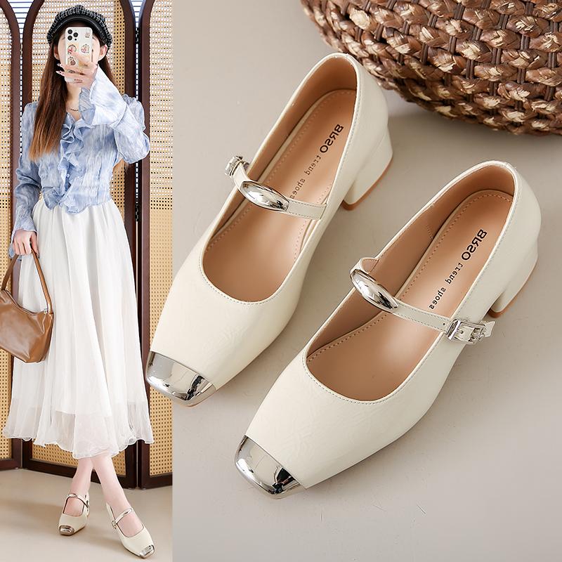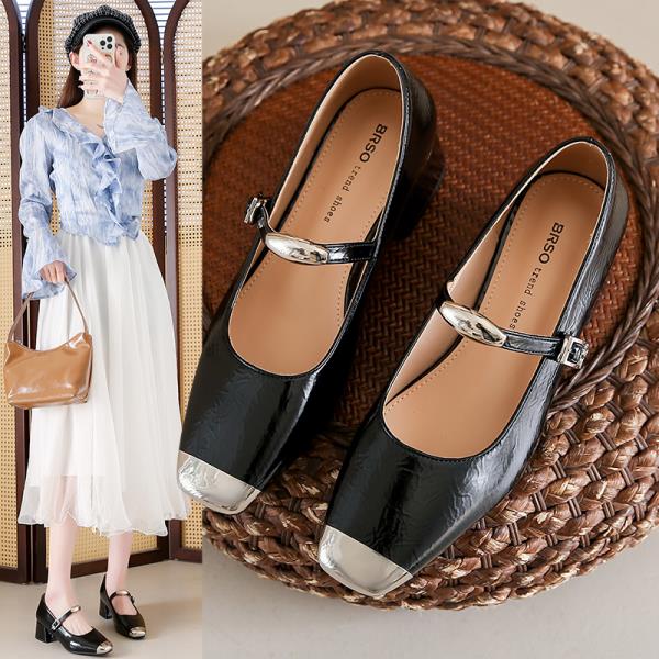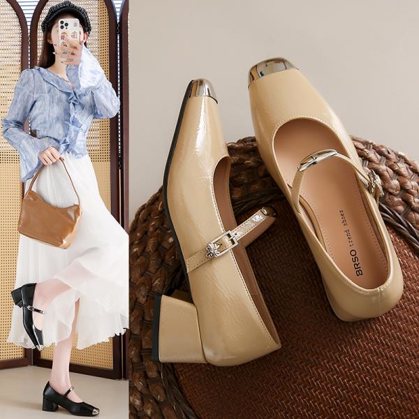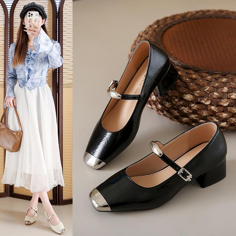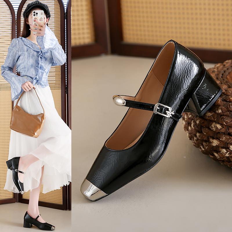 Модные черные лаковые туфли Тонкий каблук 2025 Массивные сандалии Сабо для женщин Кожаные Стройнящие Новейшие Бежевые Блочные Африканские Весенние 3 см Средний Высокий