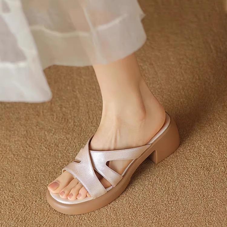 Модная обувь на высоком каблуке Женские тапочки Шлепанцы Квадратный каблук Платформа 2025 Блок Мягкая Плоская Круглый носок Повседневная Обувь для отдыха Женская S