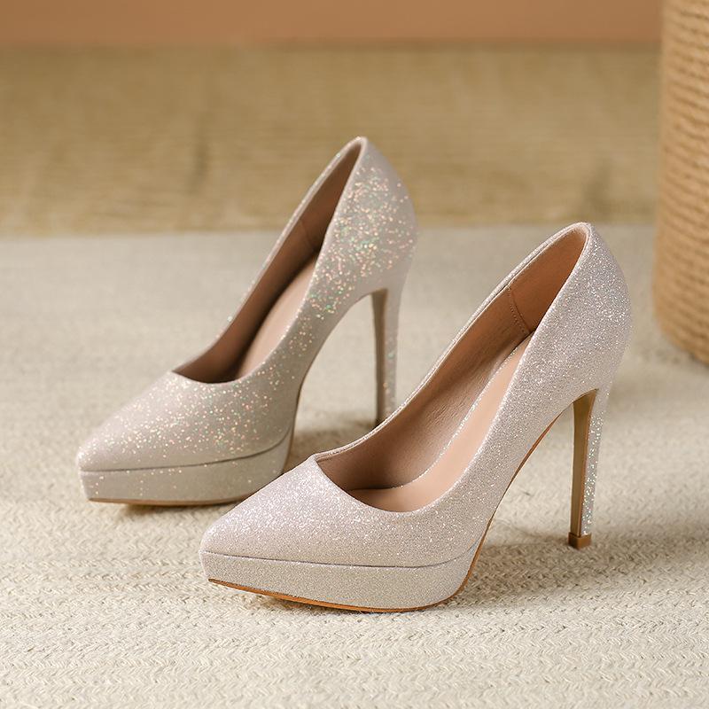 Мода 2025 Женские туфли-лодочки Задний Высокий каблук Сексуальный Тонкий каблук Высокие каблуки 12 см Остроносые лодочки Женская обувь Платформа Свадебная обувь