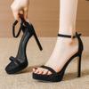 Дизайн модных брендов Ремешки на щиколотке Женские сандалии 2025 Новые 11 см Открытый носок Платформа Вечерние туфли Замшевая кожа Высокий каблук Zapatos De Mujer