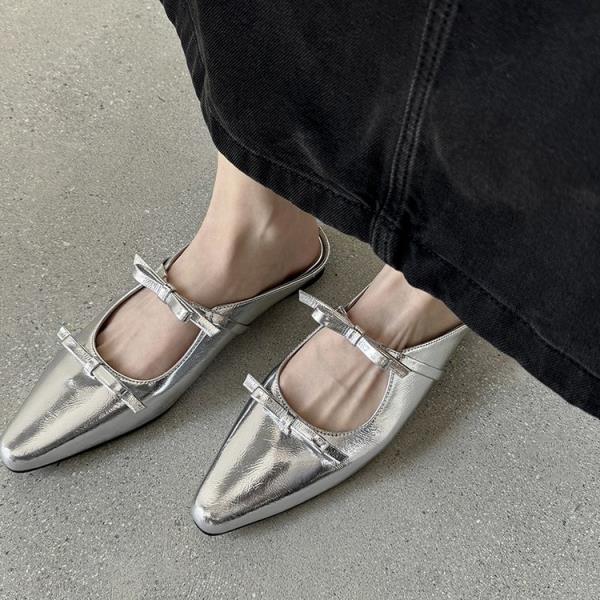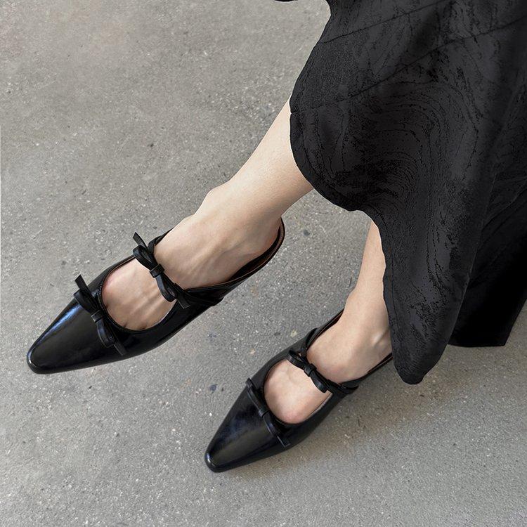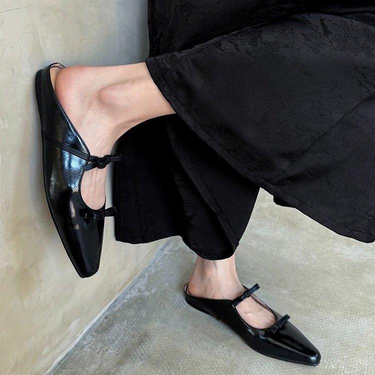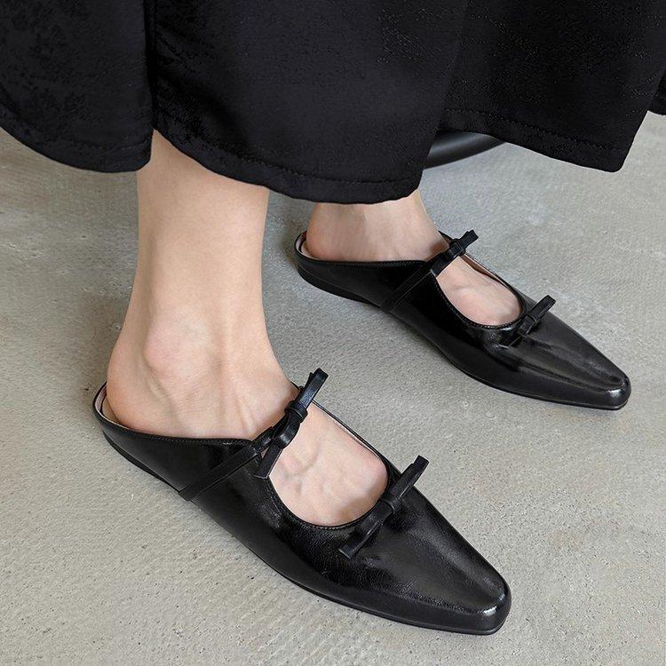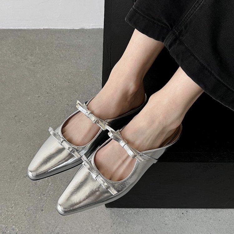 Модные мюли с закрытым носком для женщин 2025, женские тапочки, низкие, с бантом-бабочкой, с острым носком, летние шлепанцы, ПУ, бант-бабочка, синтетическая резина, ткань
