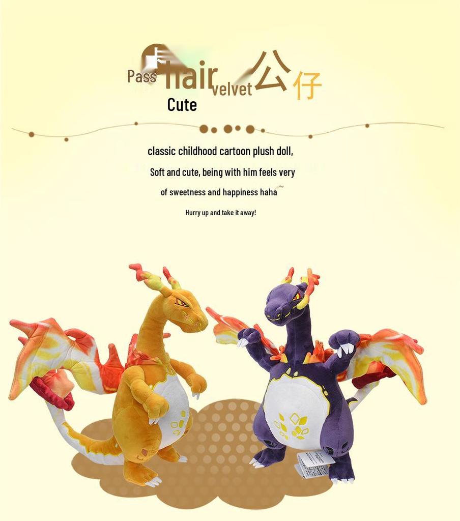 Подвижная плюшевая игрушка Гигантамакс Чаризард блестящего оранжевого цвета со скелетом