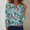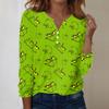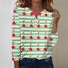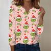 Женская модная повседневная блузка с V-образным вырезом, длинным рукавом и декоративными пуговицами, с рождественским принтом
