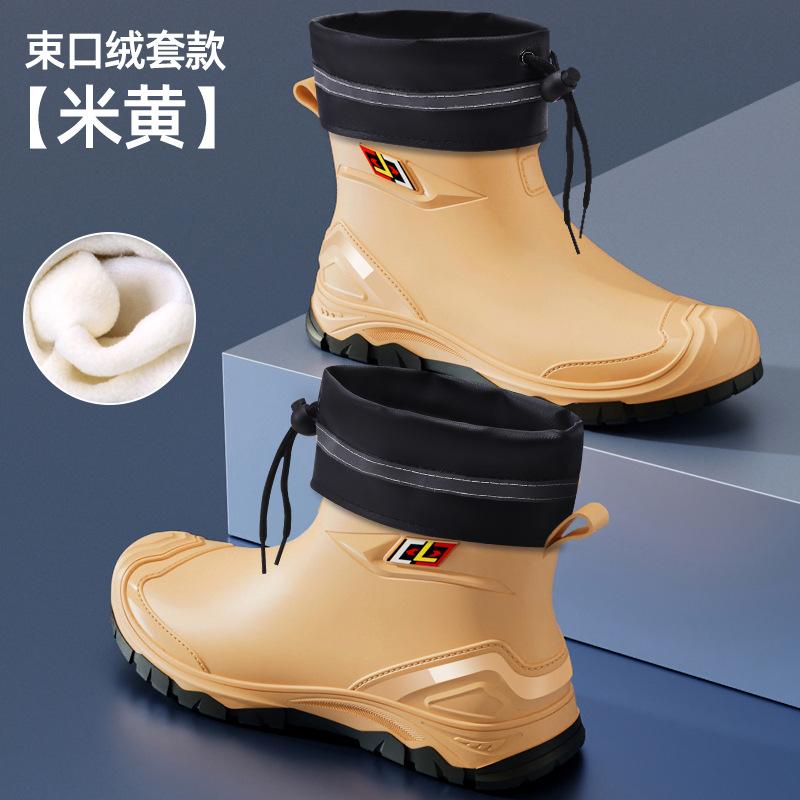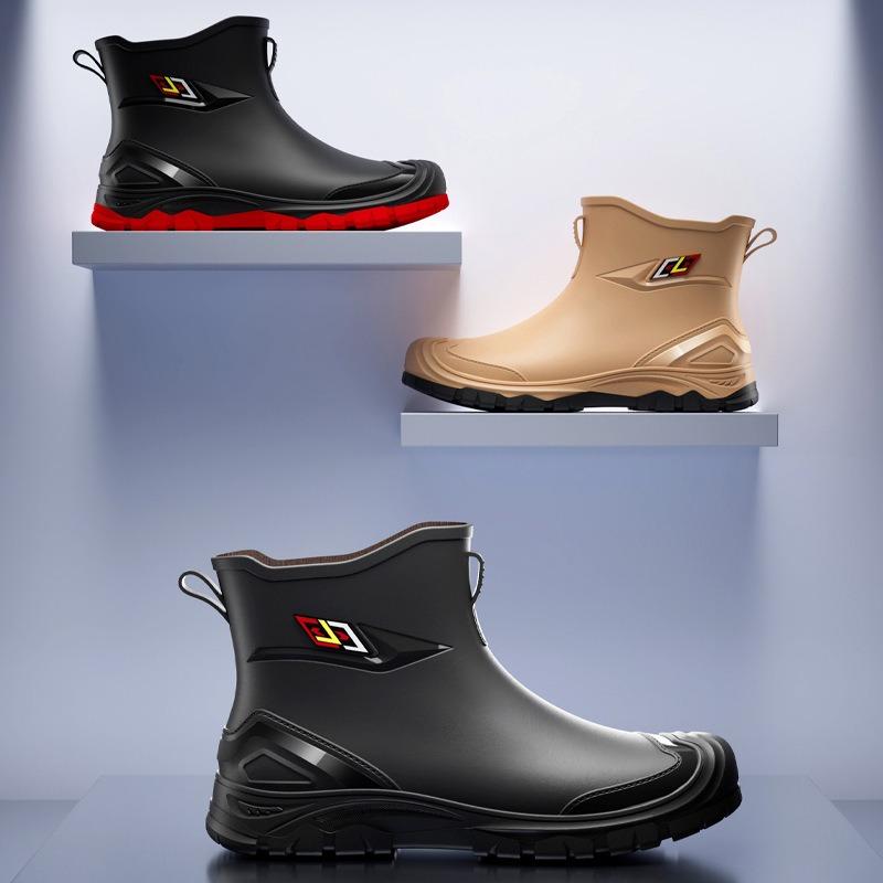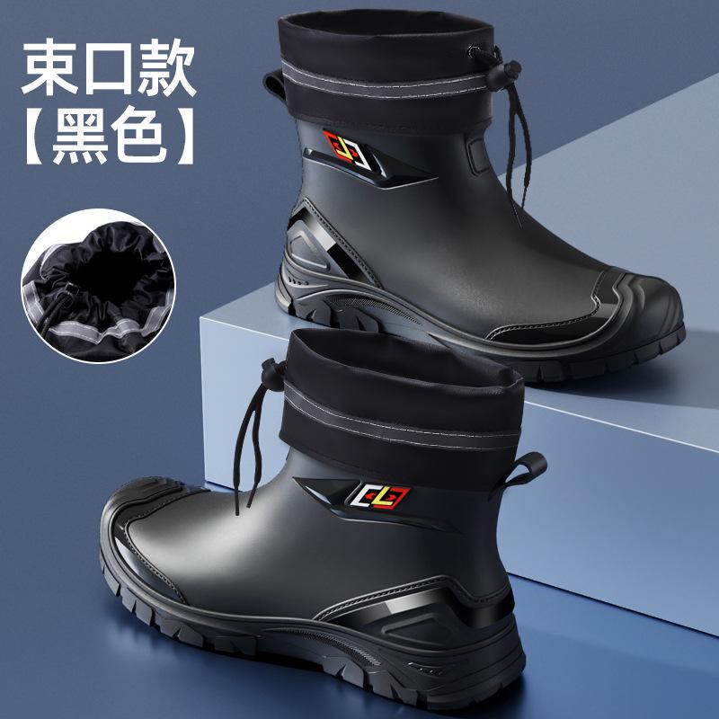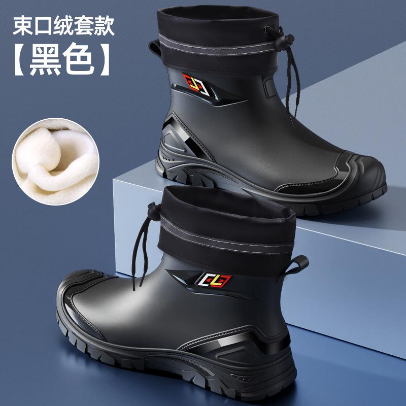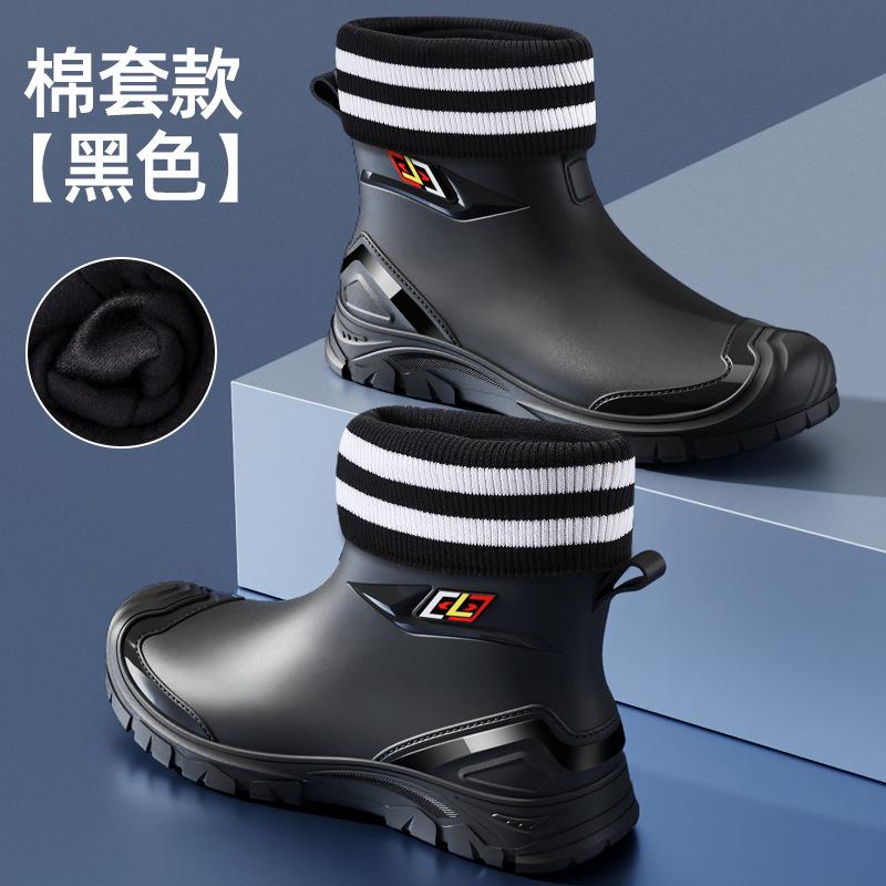 New men's rain shoes low-top water shoes wear-resistant and warm rain boots short tube fishing waterproof and non-slip rubber shoes