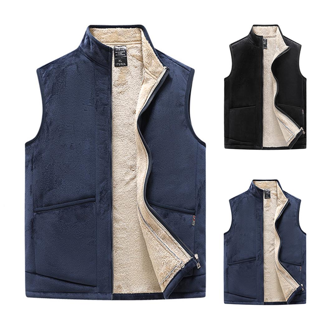 Мужской повседневный флисовый однотонный жилет на молнии, мужской жилет из искусственной овчины со стойкой воротником — купить товар онлайн с бесплатной доставкой по всему миру!