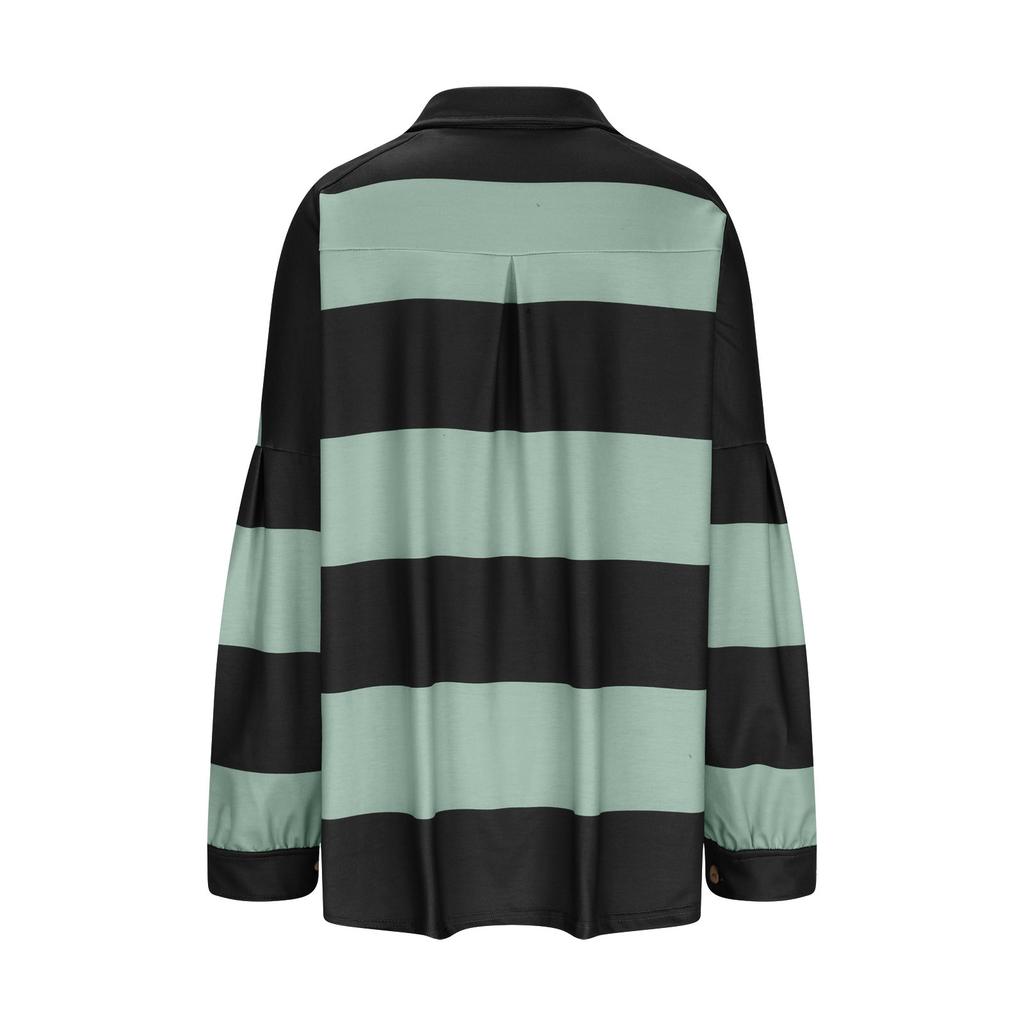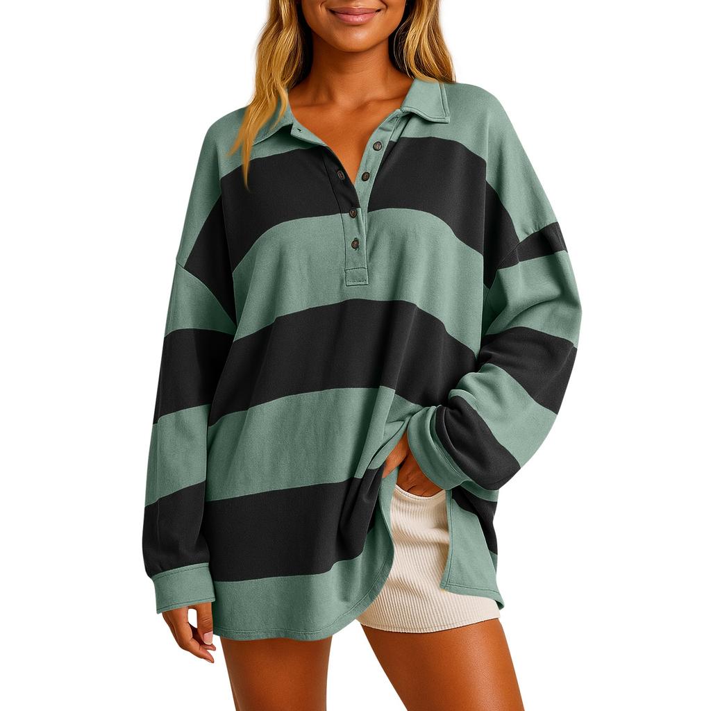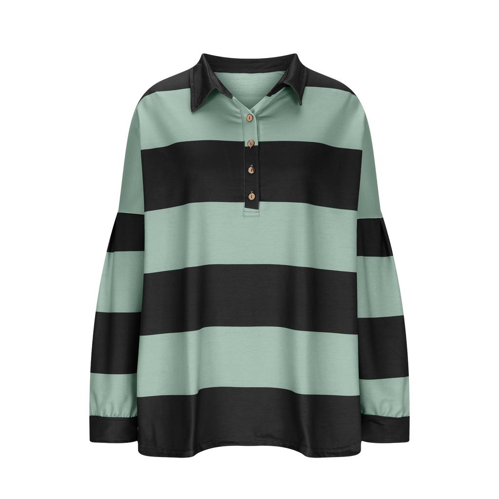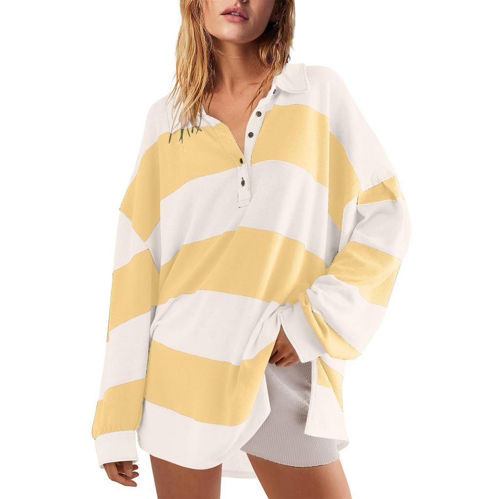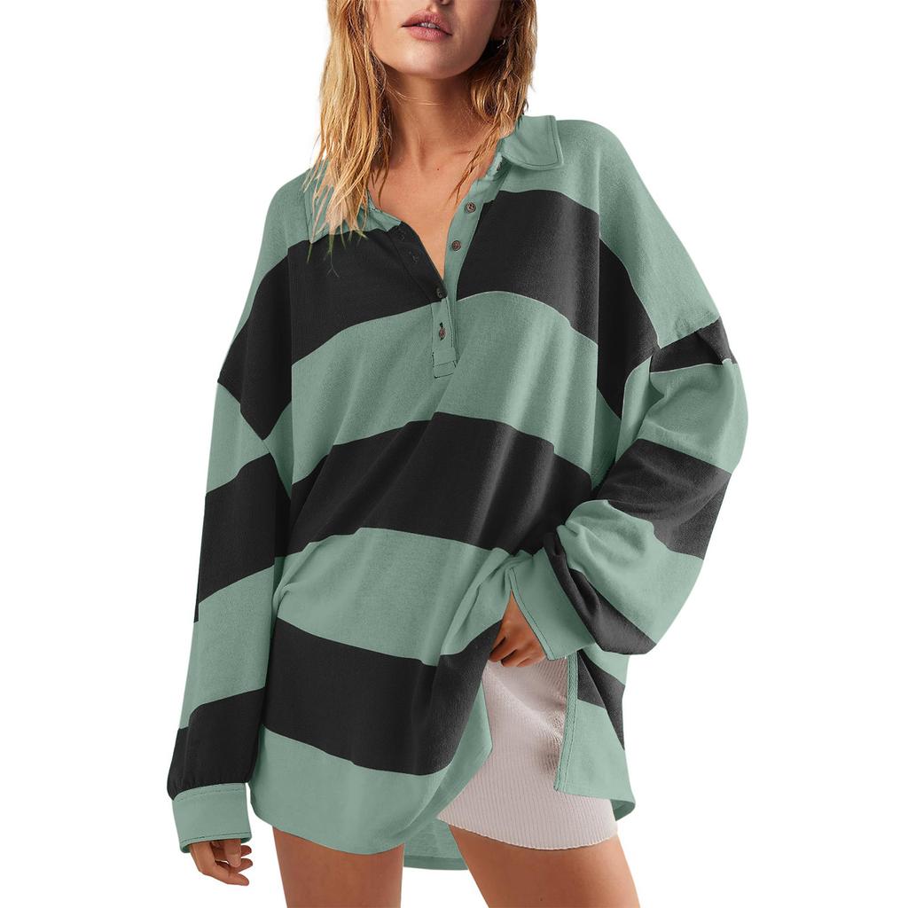Женский модный полосатый пуловер с лацканами и длинными рукавами, спортивный повседневный топ-свитшот