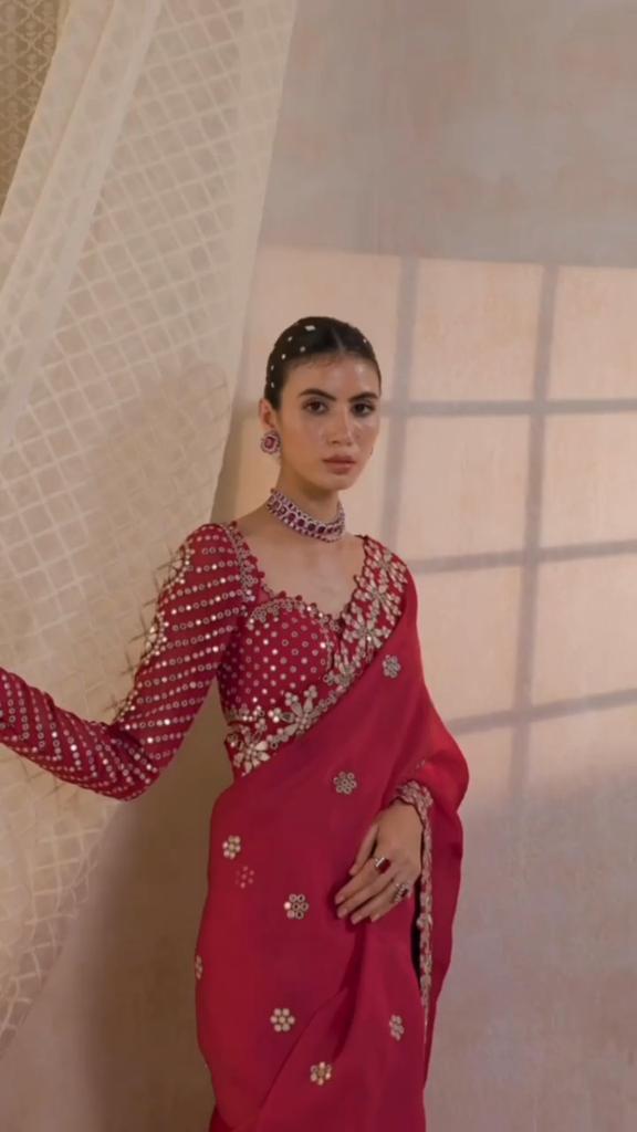уведомление: В сари и блузках, приведенных выше, может быть небольшая погрешность в размерах.