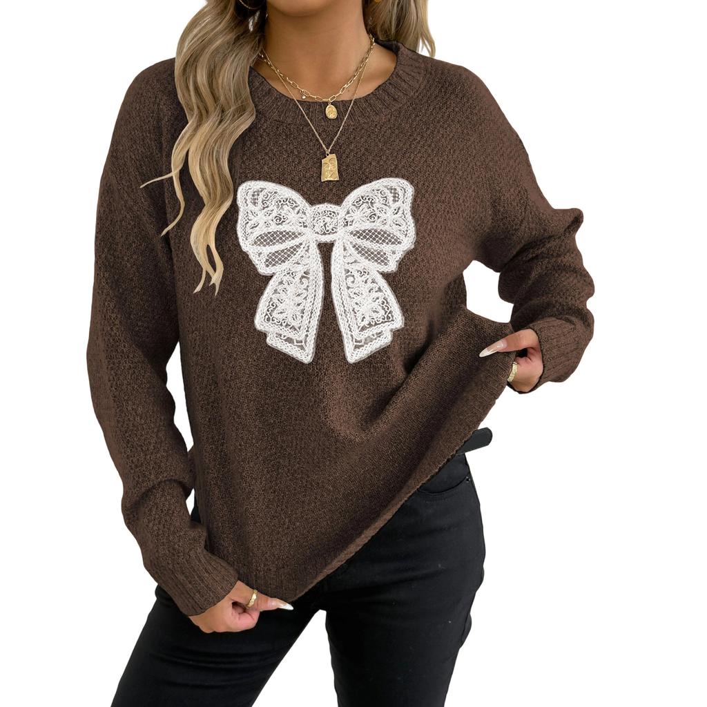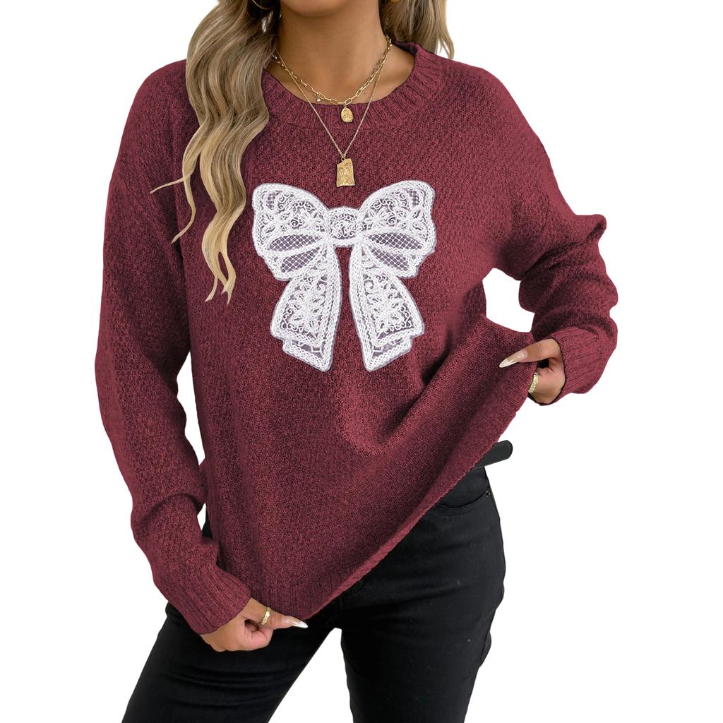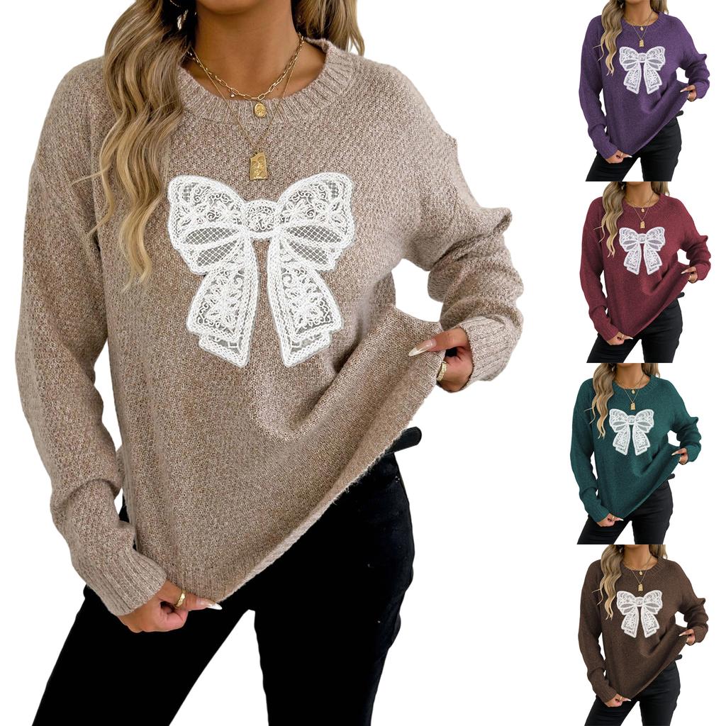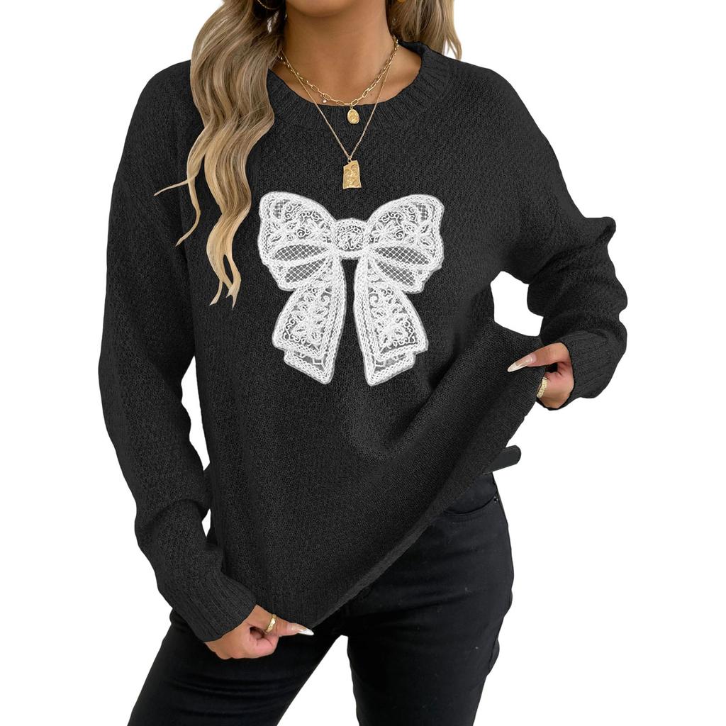 Женский повседневный пуловер с круглым вырезом, свитер с вышивкой кружевом и бабочками