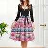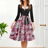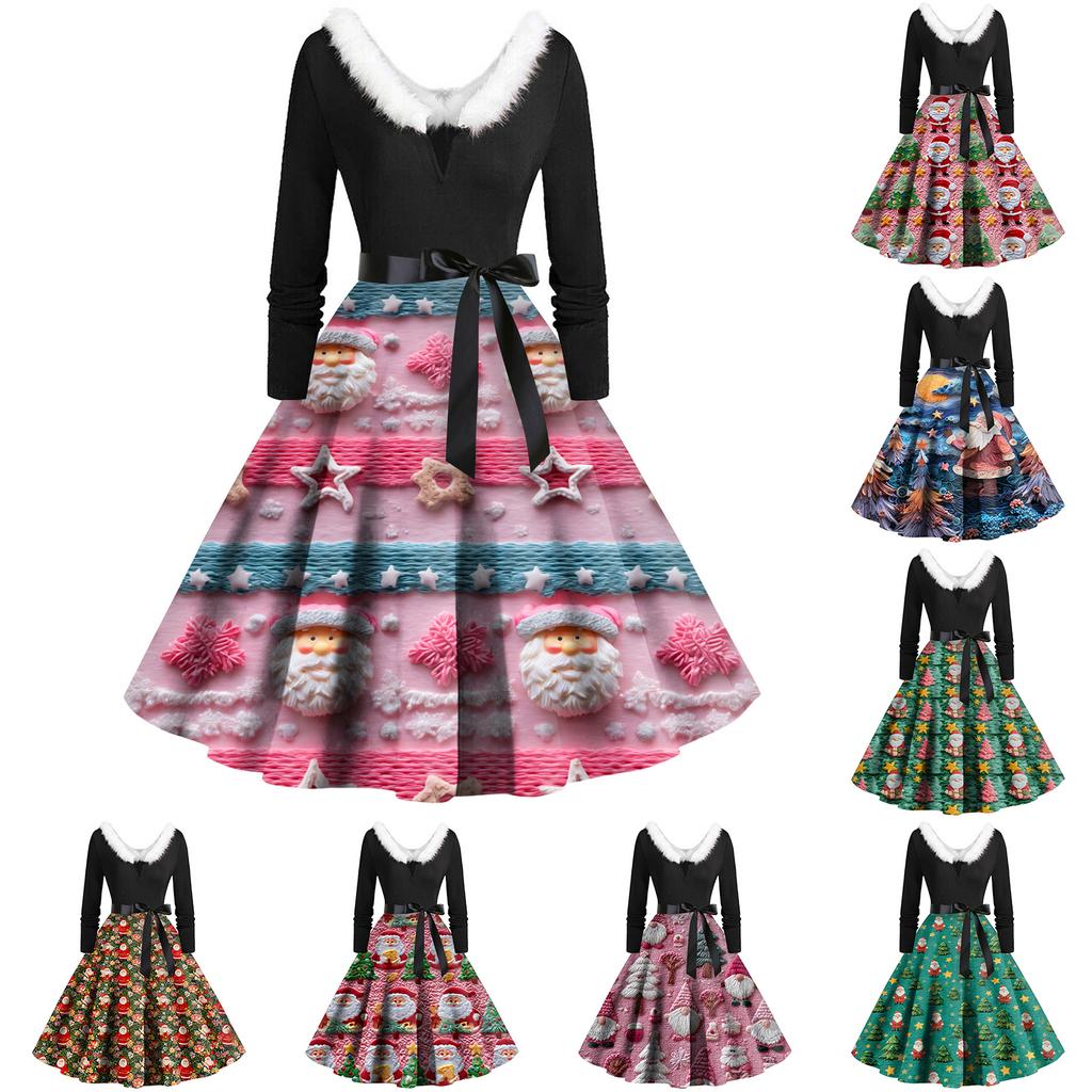 Женское модное повседневное платье приталенного кроя с круглым вырезом, рождественским принтом и длинными рукавами